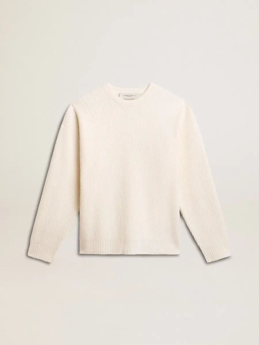 Jersey de cuello redondo para hombre en lana acanalada de color blanco desgastado