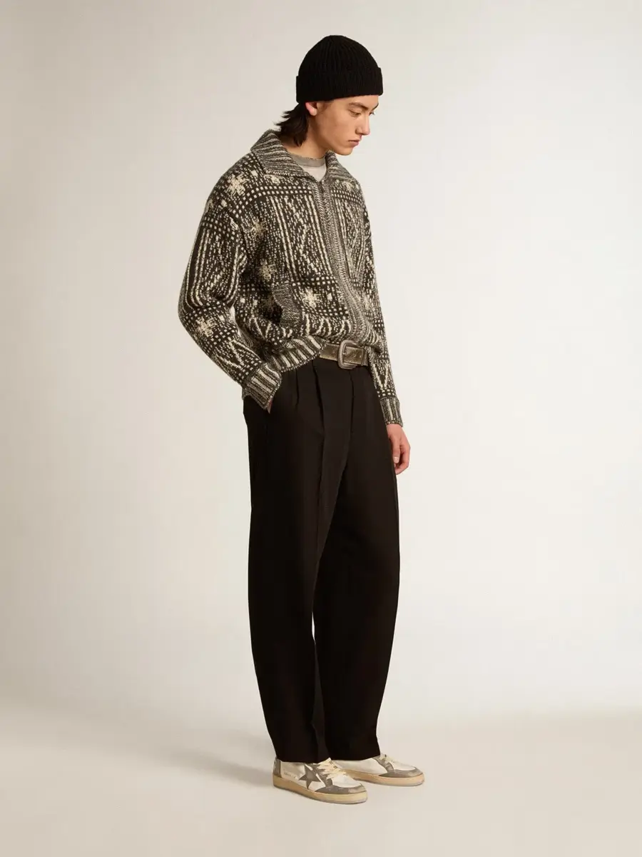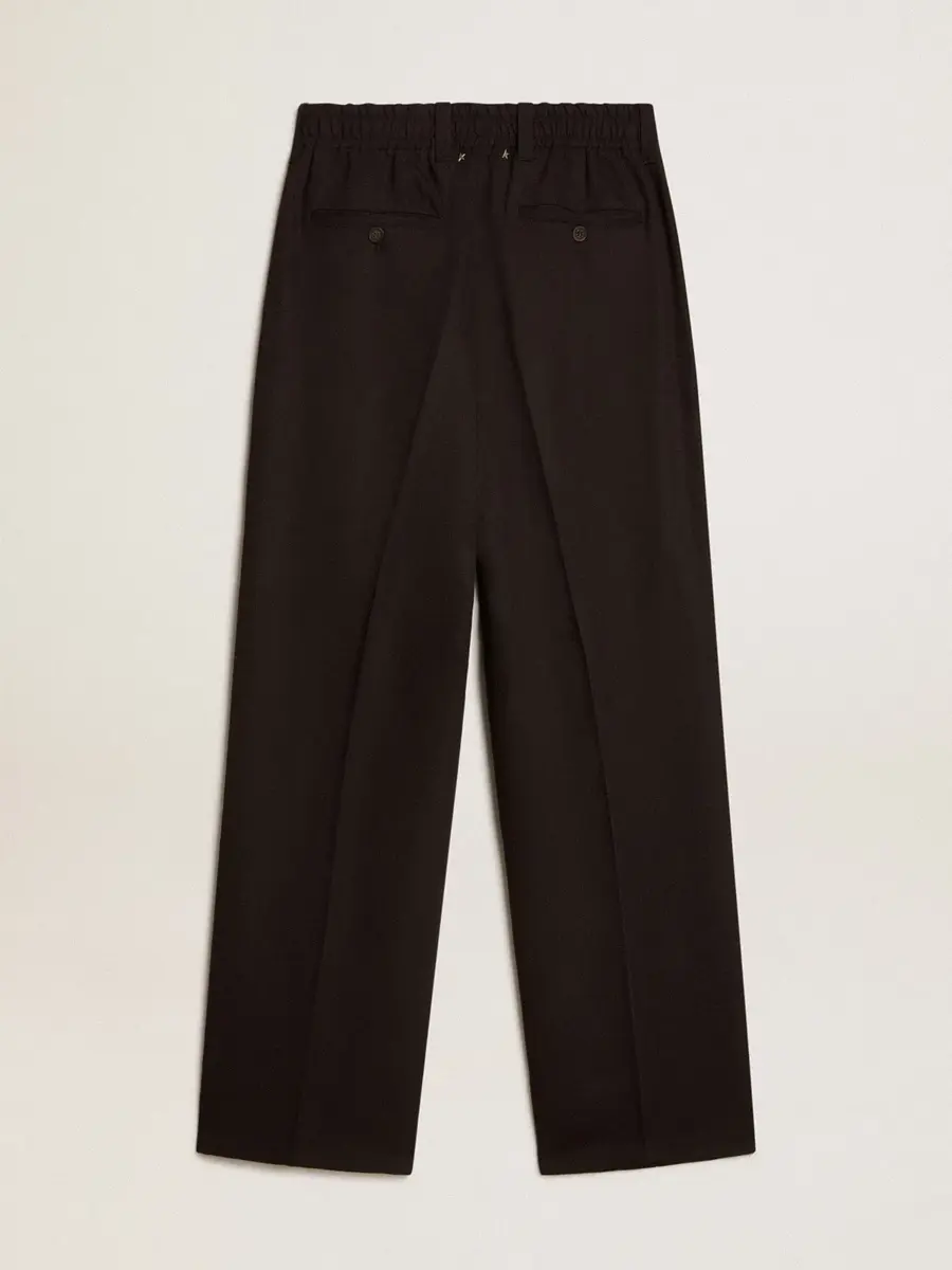 Una oda a Venecia, nuestro hogar, vista con los ojos de aquellos soñadores que la viven cada día. La colección Journey explora la ciudad de nuestras raíces, inspirándose en las personas que la habitan. Lugares diferentes e icónicos que ahora se descubren a través de la vida de sus amantes. Estos pantalones de mezcla de lana y viscosa negra cuentan con un elástico en la parte trasera de la cintura, lo que los hace adaptables a diferentes tipos de conjuntos.