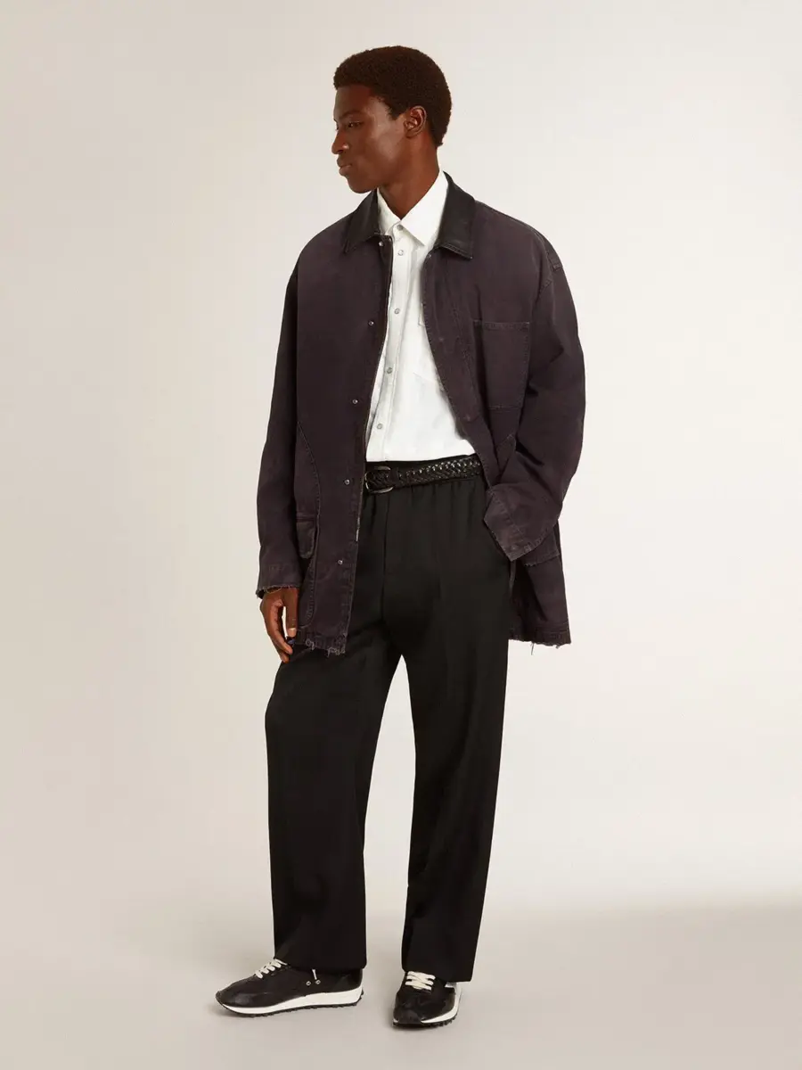 Inspirada en la energía eléctrica de los años noventa, la colección celebra el poder ilimitado de los sueños compartidos. Movidos por la pasión, cada diseño captura el significado de la unión y el poder de la música. Confeccionada en denim negro desgastado con un chaleco acolchado extraíble en el interior, esta chaqueta presenta detalles desgastados y un doble cierre: con botones a presión y una cremallera metálica interna. Cinco bolsillos delanteros y un cuello de cuero añaden el toque final.