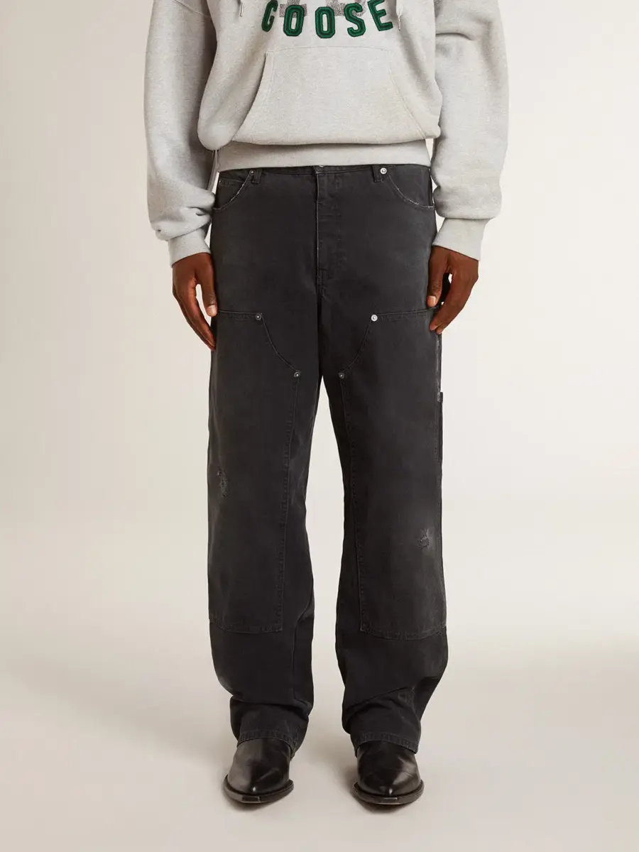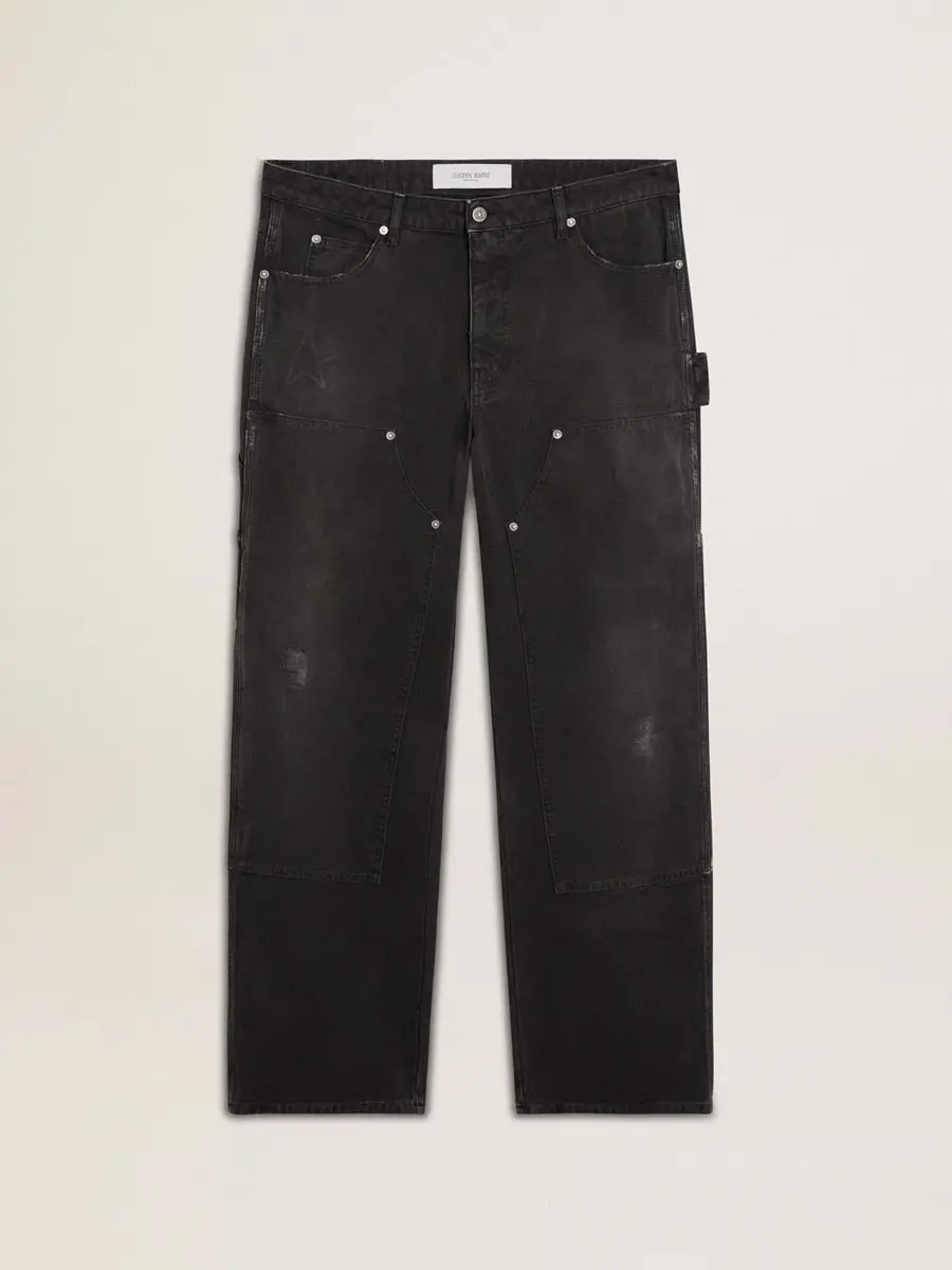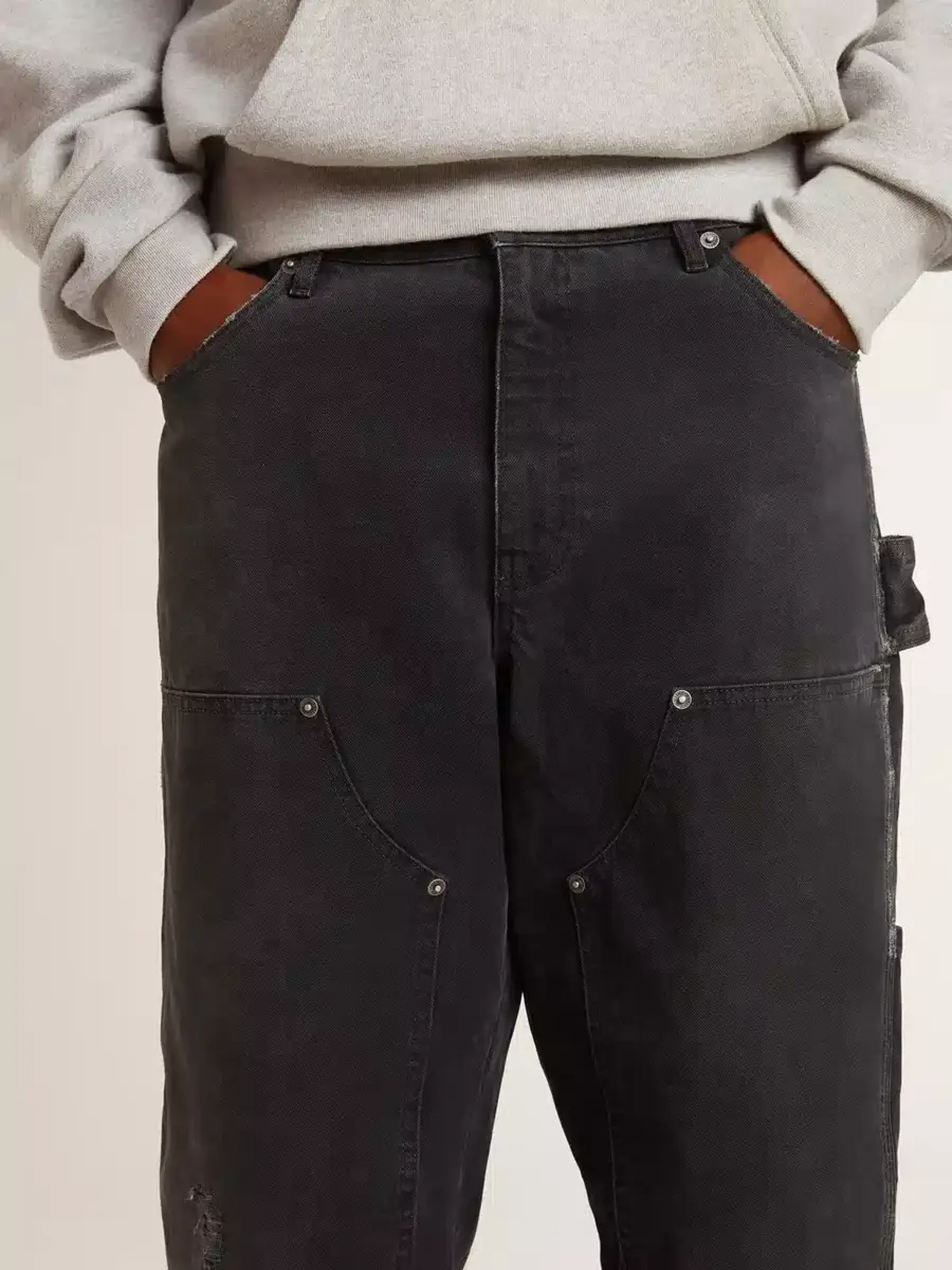 Inspirada en la energía eléctrica de los años noventa, la colección celebra el poder ilimitado de los sueños compartidos. Movidos por la pasión, cada diseño captura el significado de la unión y el poder de la música. Estos vaqueros de algodón negro tienen un efecto desgastado y un tejido deliberadamente desgastado. Los parches frontales con tachuelas y la estrella tono sobre tono debajo del bolsillo derecho añaden el toque final.