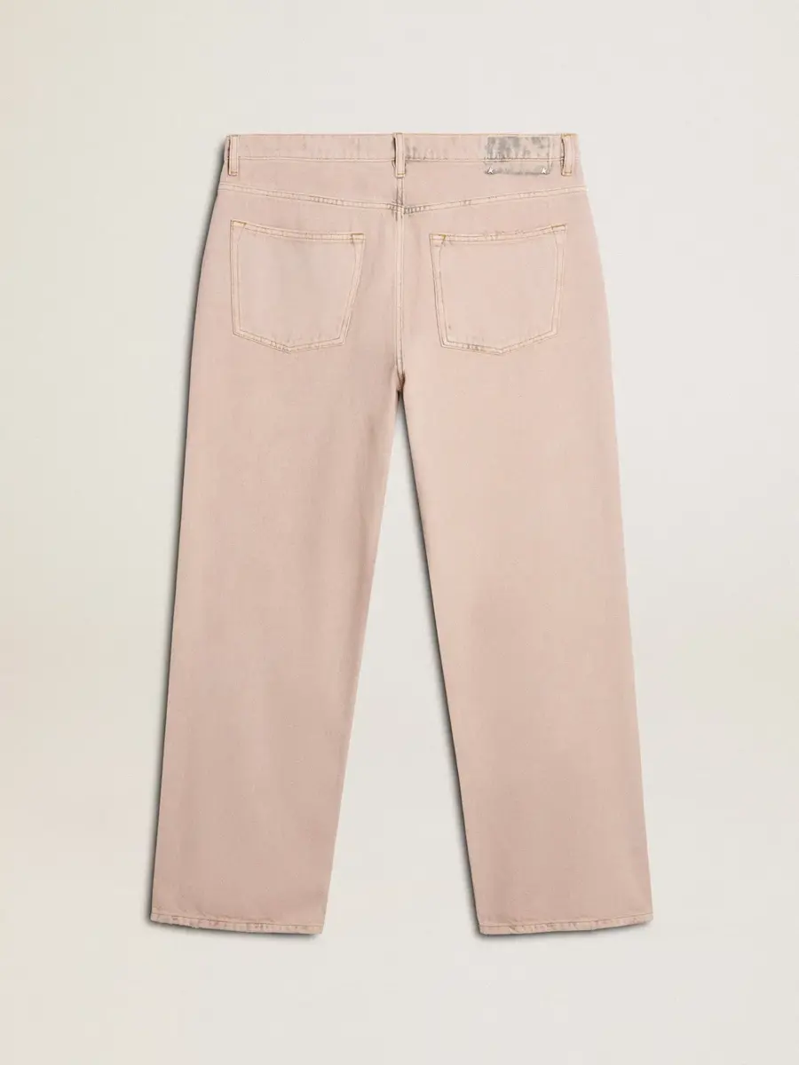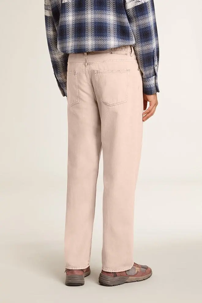 Una colección inspirada en la armonía de la naturaleza, donde cada detalle fluye con naturalidad. Estos vaqueros de corte holgado se caracterizan por un proceso de elaboración artesanal especial, único para cada pieza: originalmente negros, se lavan y tiñen varias veces para conseguir este distintivo color rosa pastel.