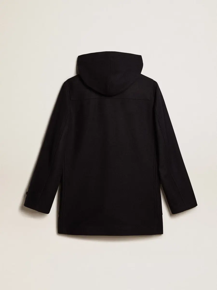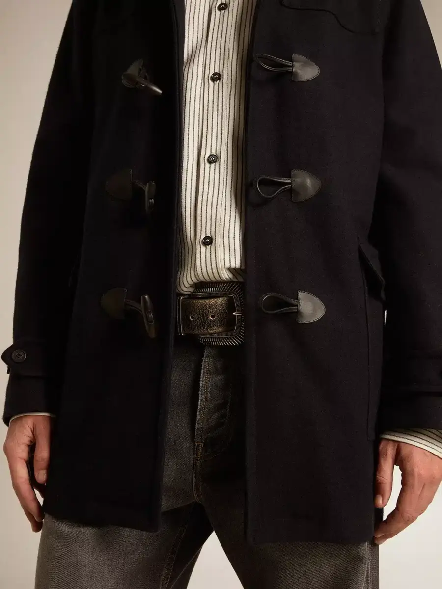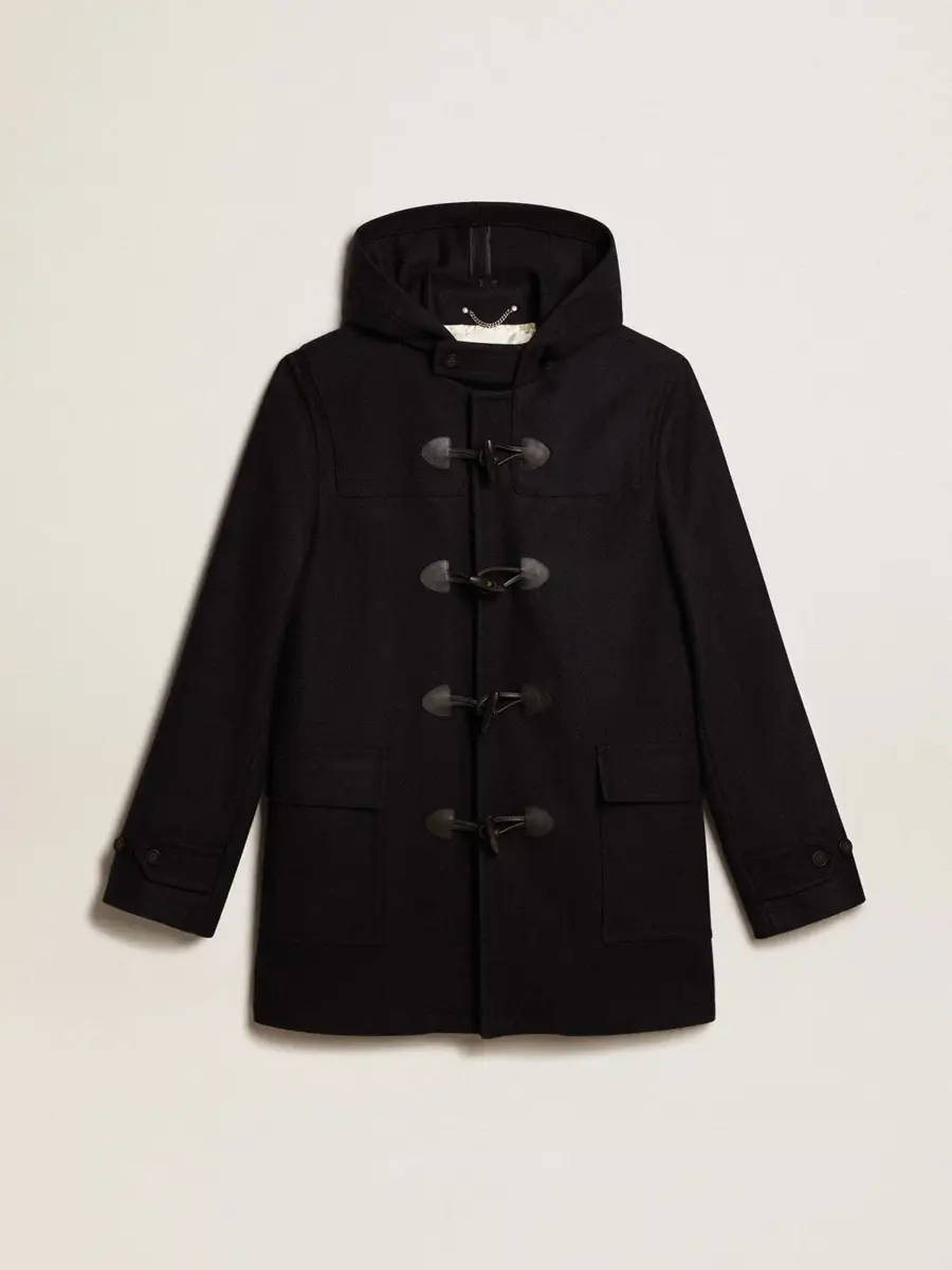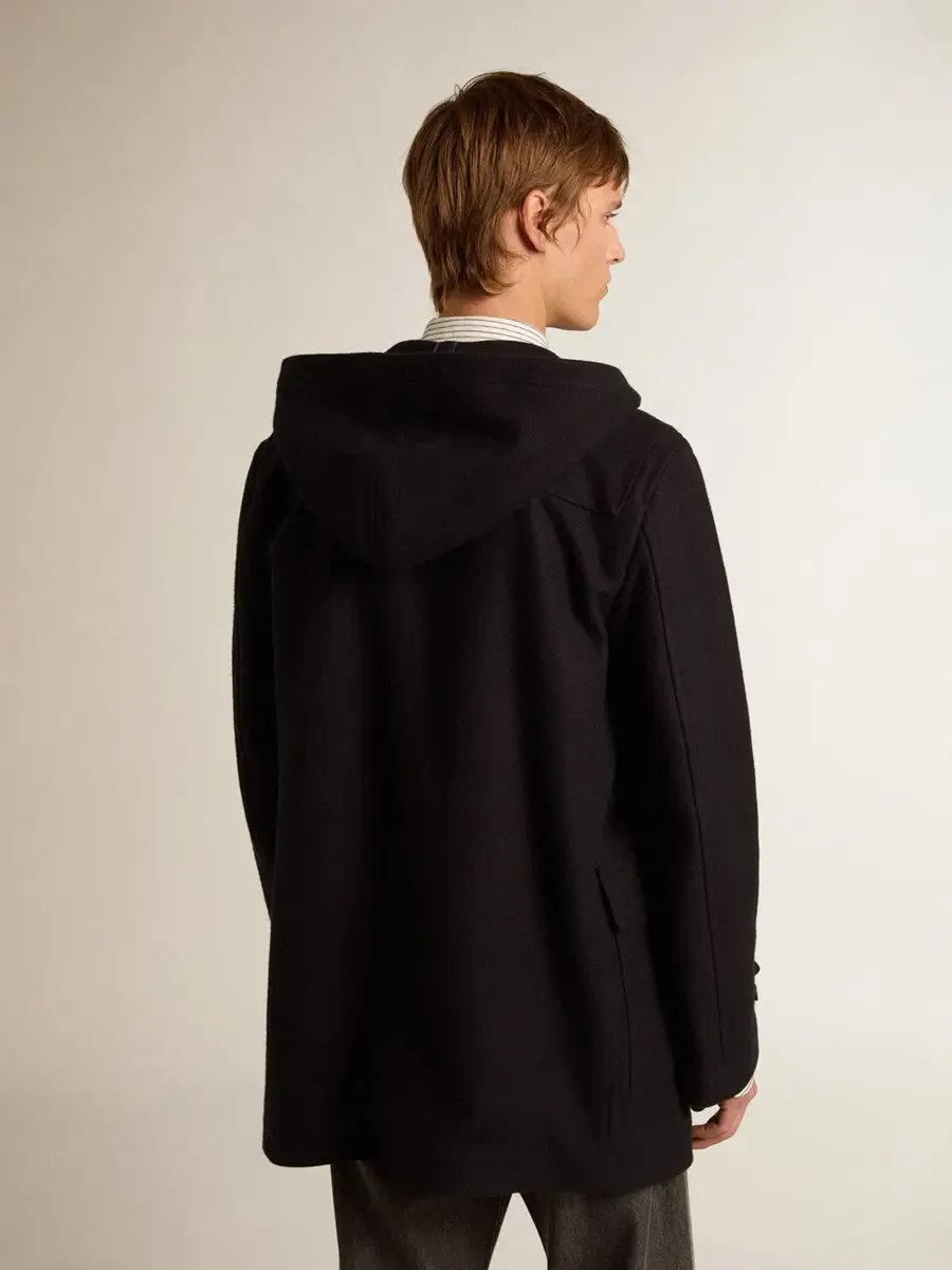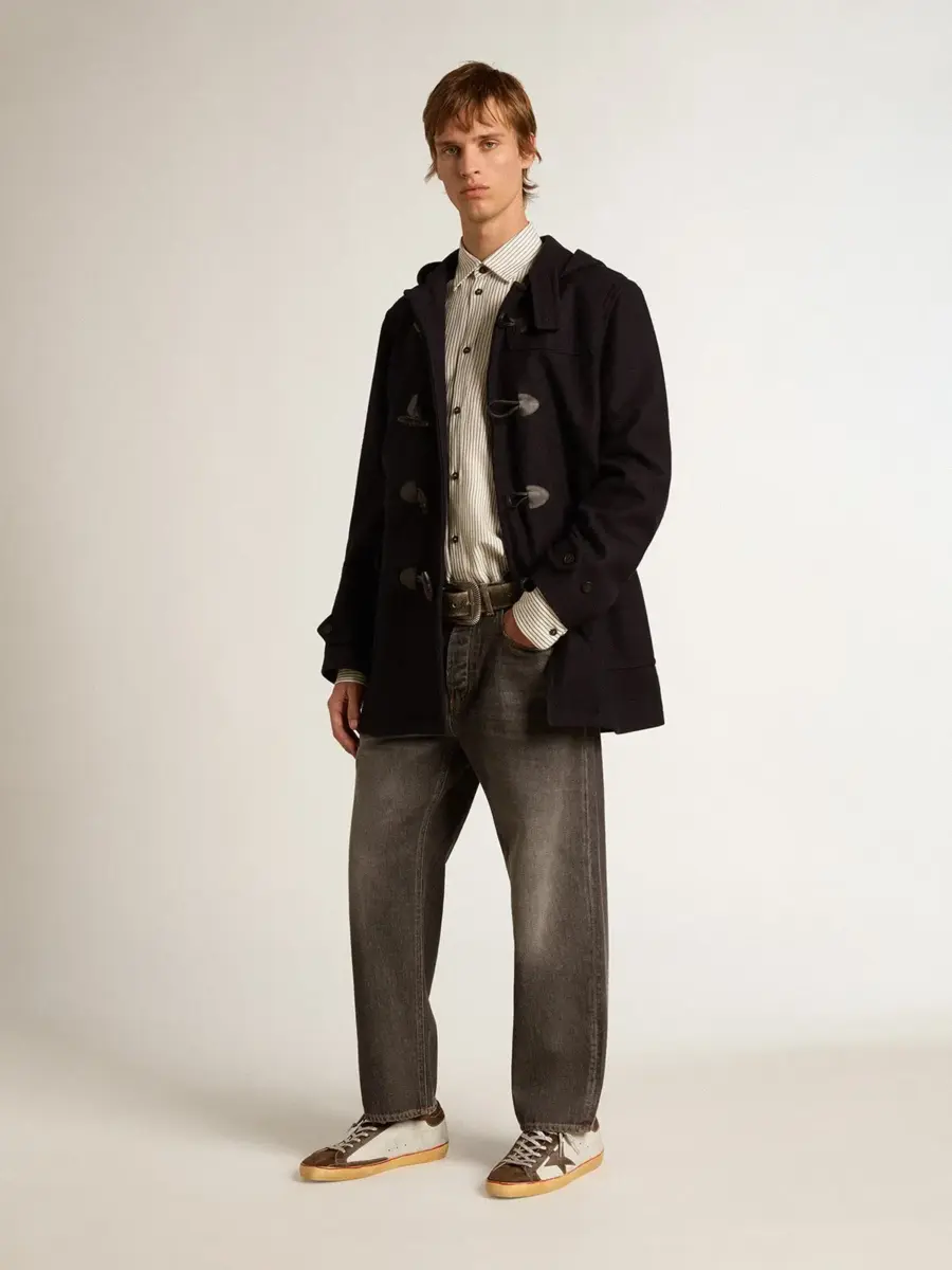 Una colección única y atemporal que encapsula el ADN de Golden Goose, diseñada para acompañarte cada día, en las buenas y en las malas, llueva o haga sol. Este abrigo de lana azul oscuro con capucha cuenta con cierre de toggle y un forro interior con estampado negro sobre fondo color mantequilla, lo que lo hace ideal para todos tus looks de invierno.