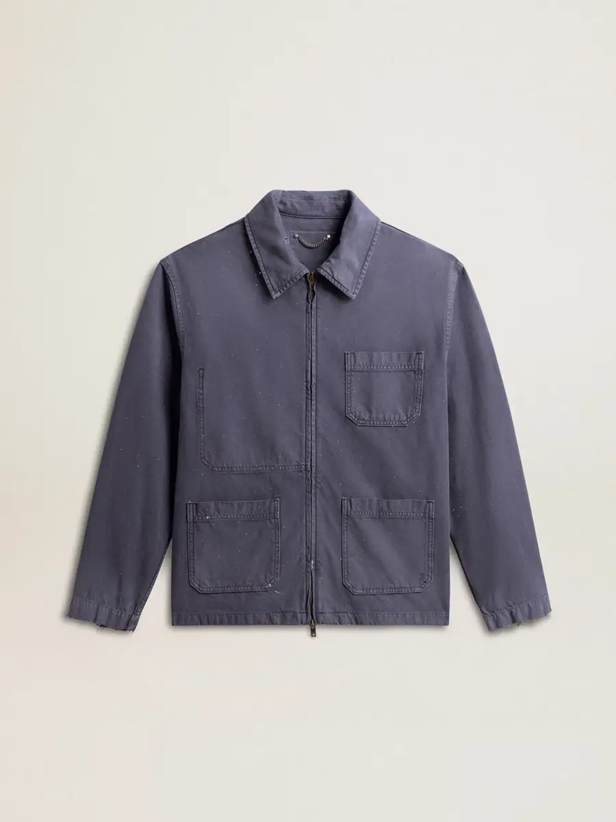 Una historia de amor con nuestra ciudad natal, Marghera. Donde todo comenzó. Nuestra última colección refleja el espíritu de nuestro lugar de origen, sus contrastes, su alma industrial y sus paisajes manufactureros, entrelazando inspiraciones tanto de la vibrante energía de la ropa de trabajo como de la refinada esencia de la sastrería tradicional. Esta chaqueta azul de algodón denim con cremallera presenta un tejido utilizado deliberadamente en el reverso y un acabado desgastado. Los rociados y las costuras hacen que esta chaqueta sea verdaderamente única.
