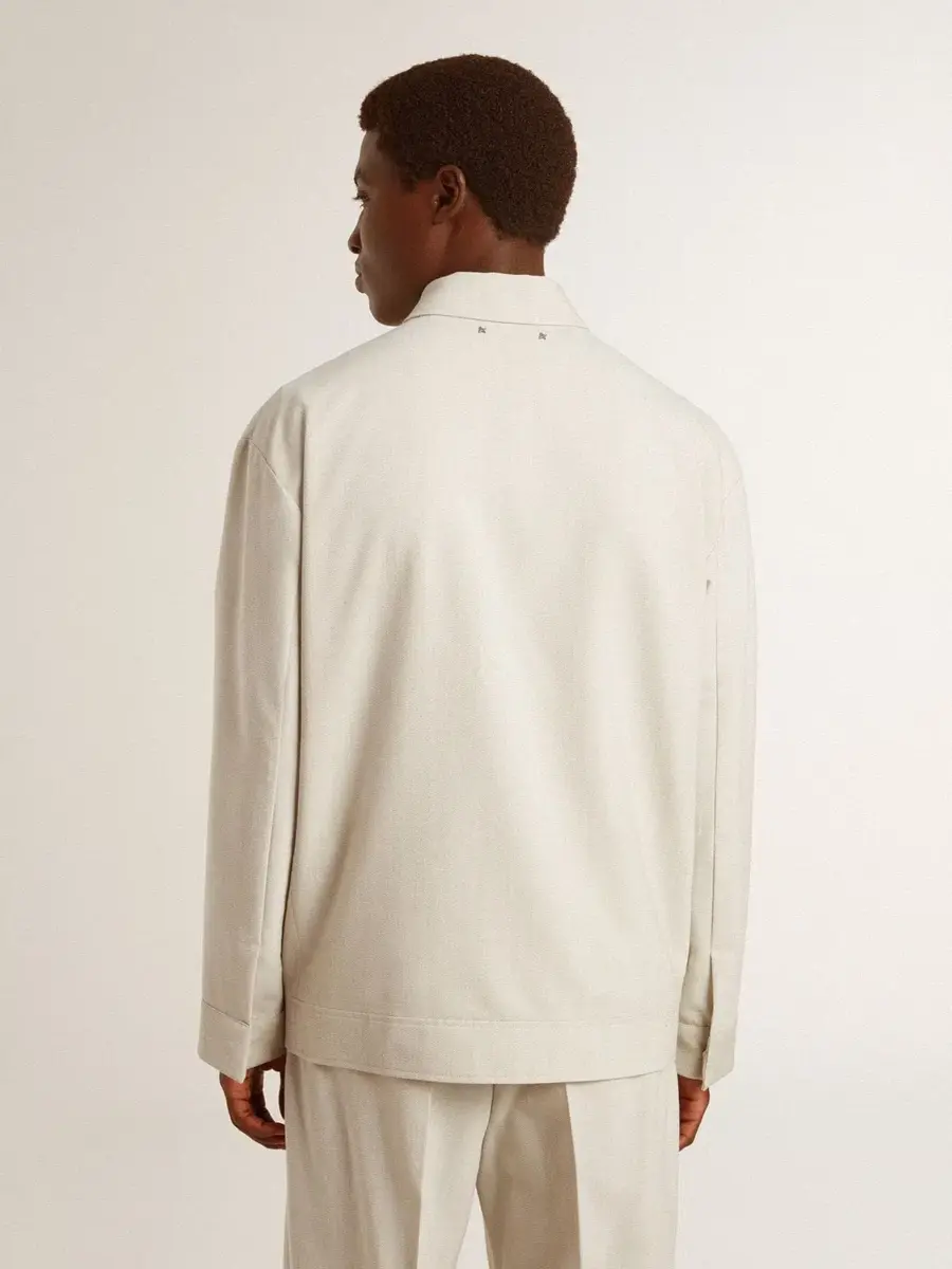 Abrazando la esencia de la temporada, esta colección irradia vitalidad y libertad, combinando una elegancia aireada con chispas dinámicas de energía. Esta chaqueta coach de corte regular para hombre en mezcla de lana caqui cuenta con un cierre central de doble cremallera. El forro a rayas y los ganchos ocultos en los puños añaden el toque final, haciendo que esta prenda sea práctica y versátil.