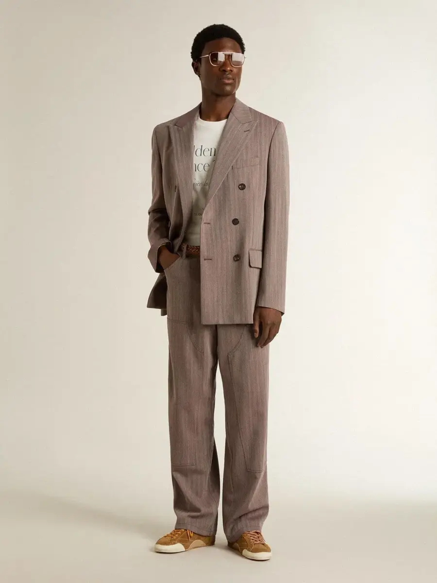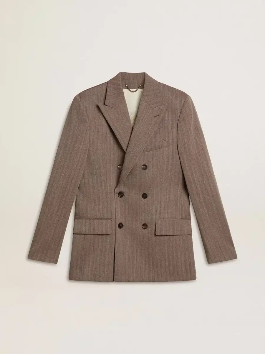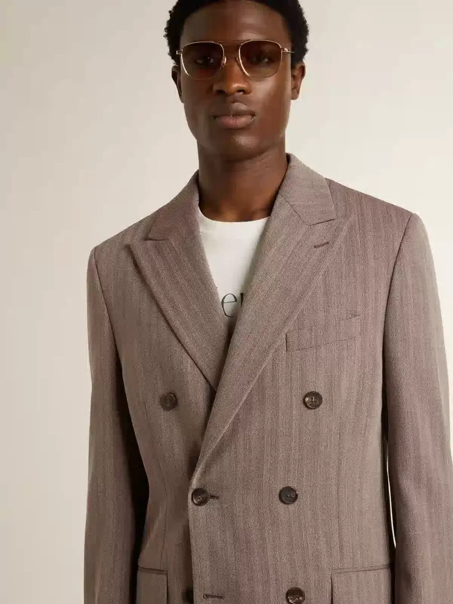 Blazer cruzado de lana mezclada con diseño chevron en color beige para hombre