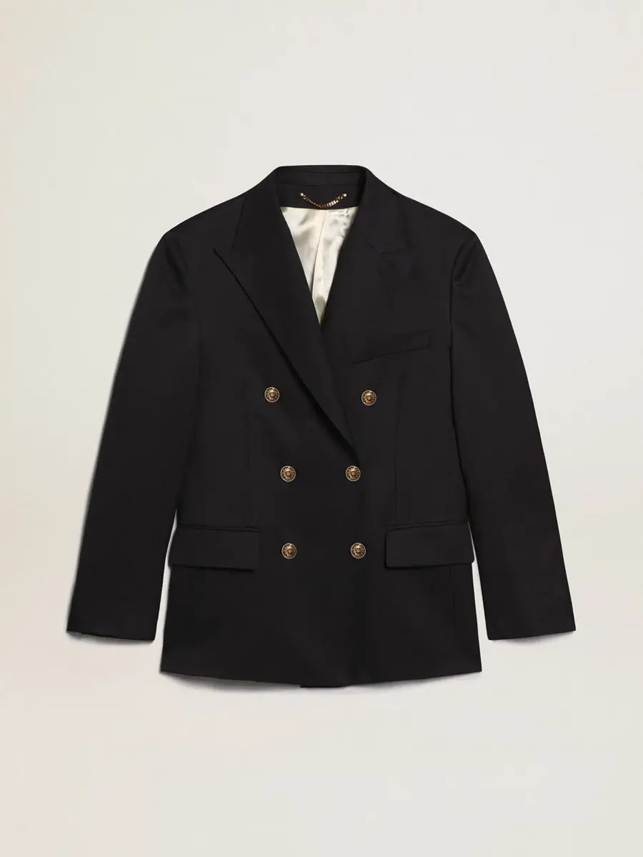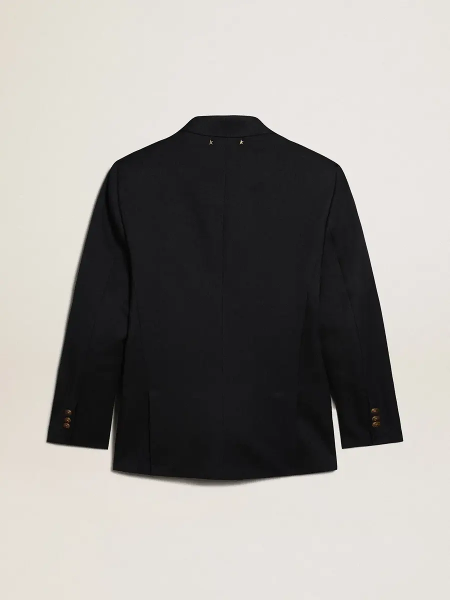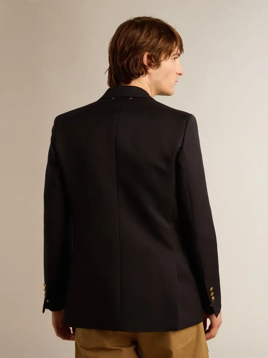 Una colección única y atemporal que engloba la esencia de Golden Goose, diseñada para acompañarte cada día y acompañarte en tus altibajos, llueva o haga sol. Esta chaqueta cruzada de corte regular en azul oscuro cuenta con un cierre con botones heráldicos dorados.