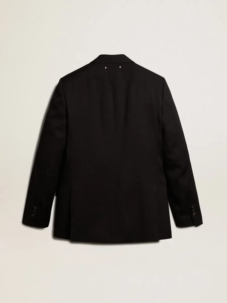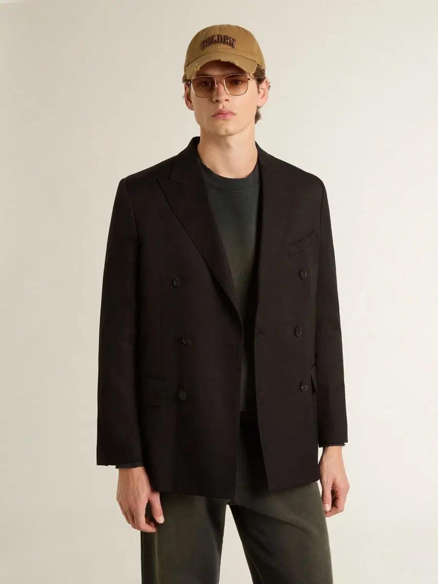 Una colección única y atemporal que encapsula el ADN de Golden Goose, diseñada para acompañarte cada día, en las buenas y en las malas, llueva o haga sol. Esta chaqueta negra de doble botonadura en gabardina de lana cuenta con cierre de botones y forro interior estampado.