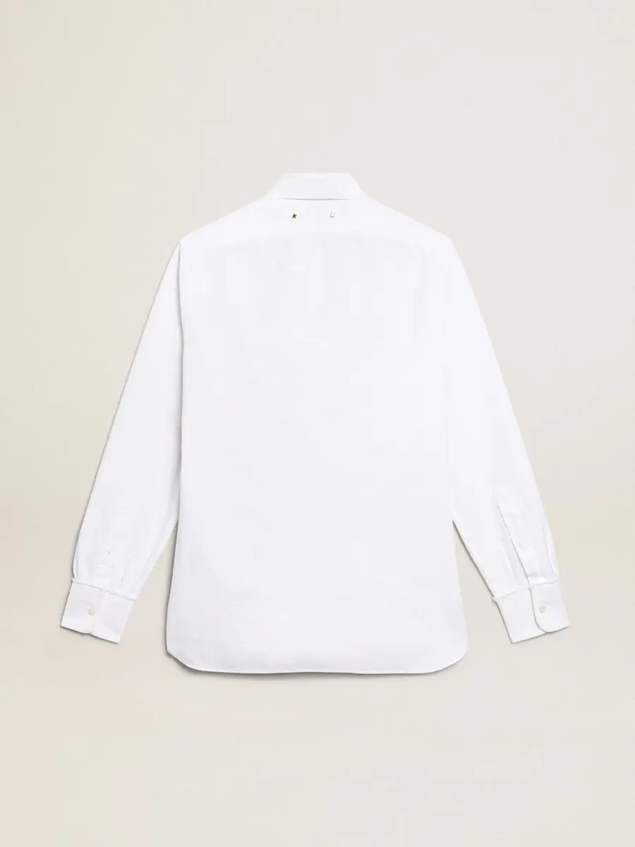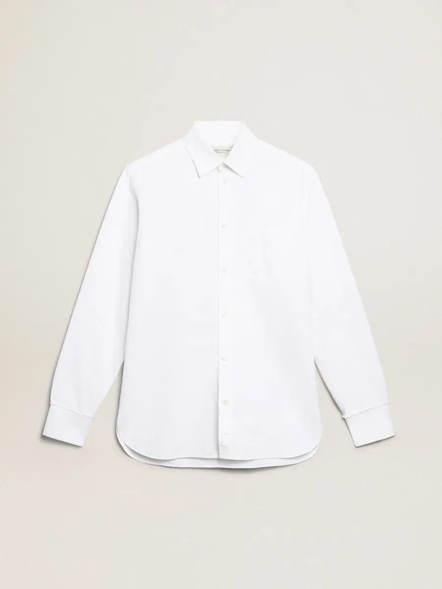 Una colección única y atemporal que encapsula el ADN de Golden Goose, diseñada para acompañarte cada día, en las buenas y en las malas, llueva o haga sol. Esta camisa de hombre de corte regular, confeccionada en algodón blanco con un tratamiento desgastado, cuenta con un bolsillo en el pecho.