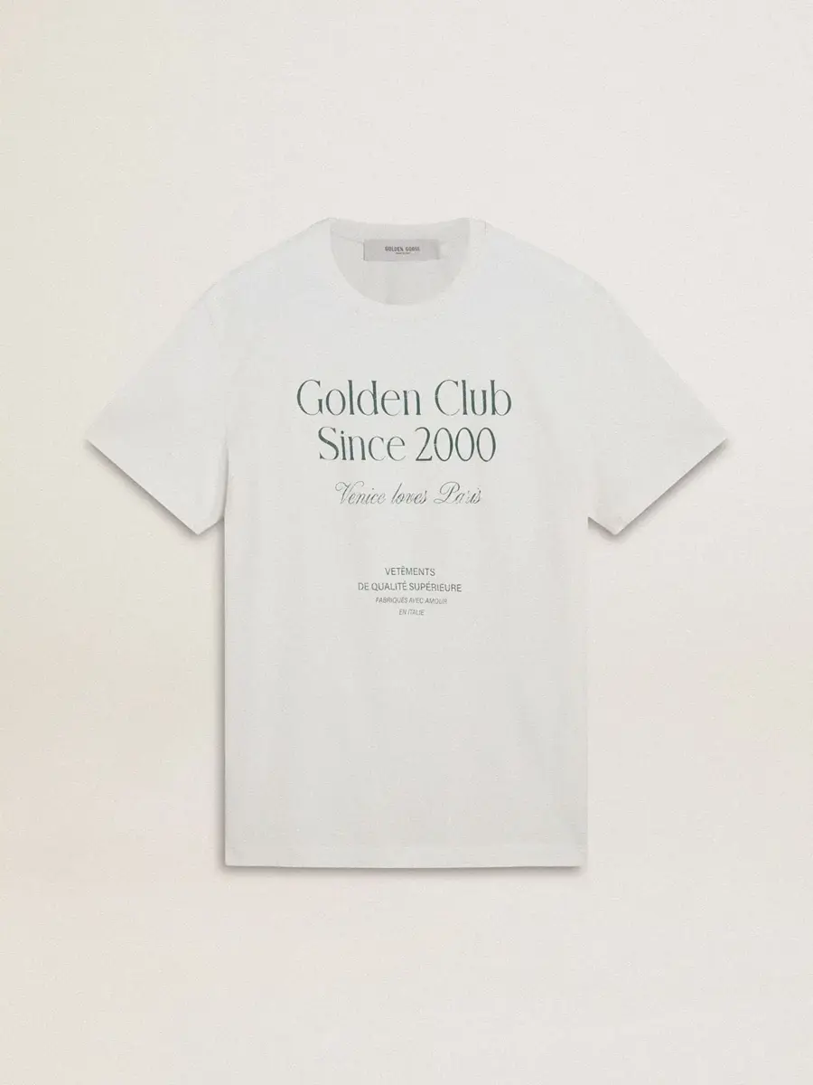 Inspirada en los icónicos años setenta, el espíritu desenfadado de esa época cobra vida con el primer lanzamiento de nuestra colección Otoño/Invierno 25. Esta camiseta de manga corta de algodón blanco presenta el estampado verde «Golden Club Since 2000» en la parte delantera.