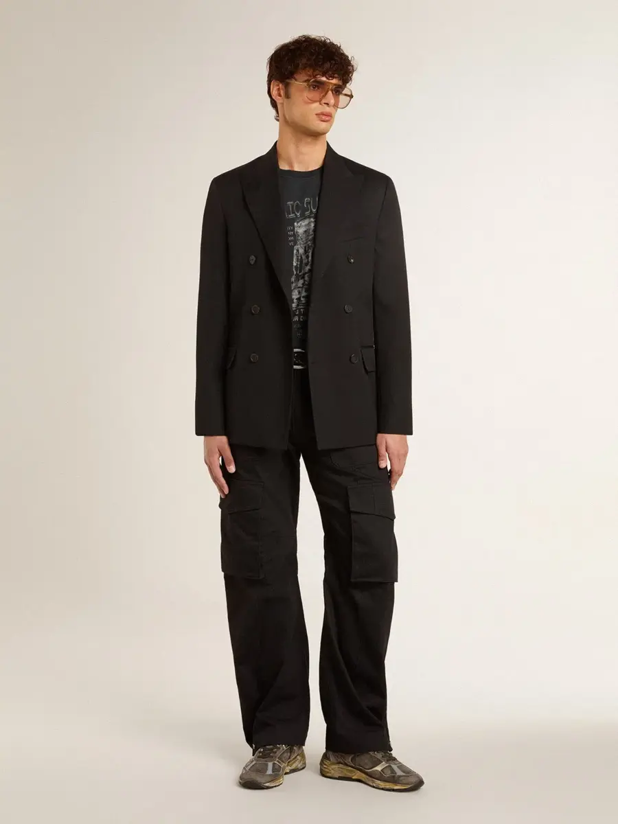 El modelo mide 183 cm y lleva una talla M.