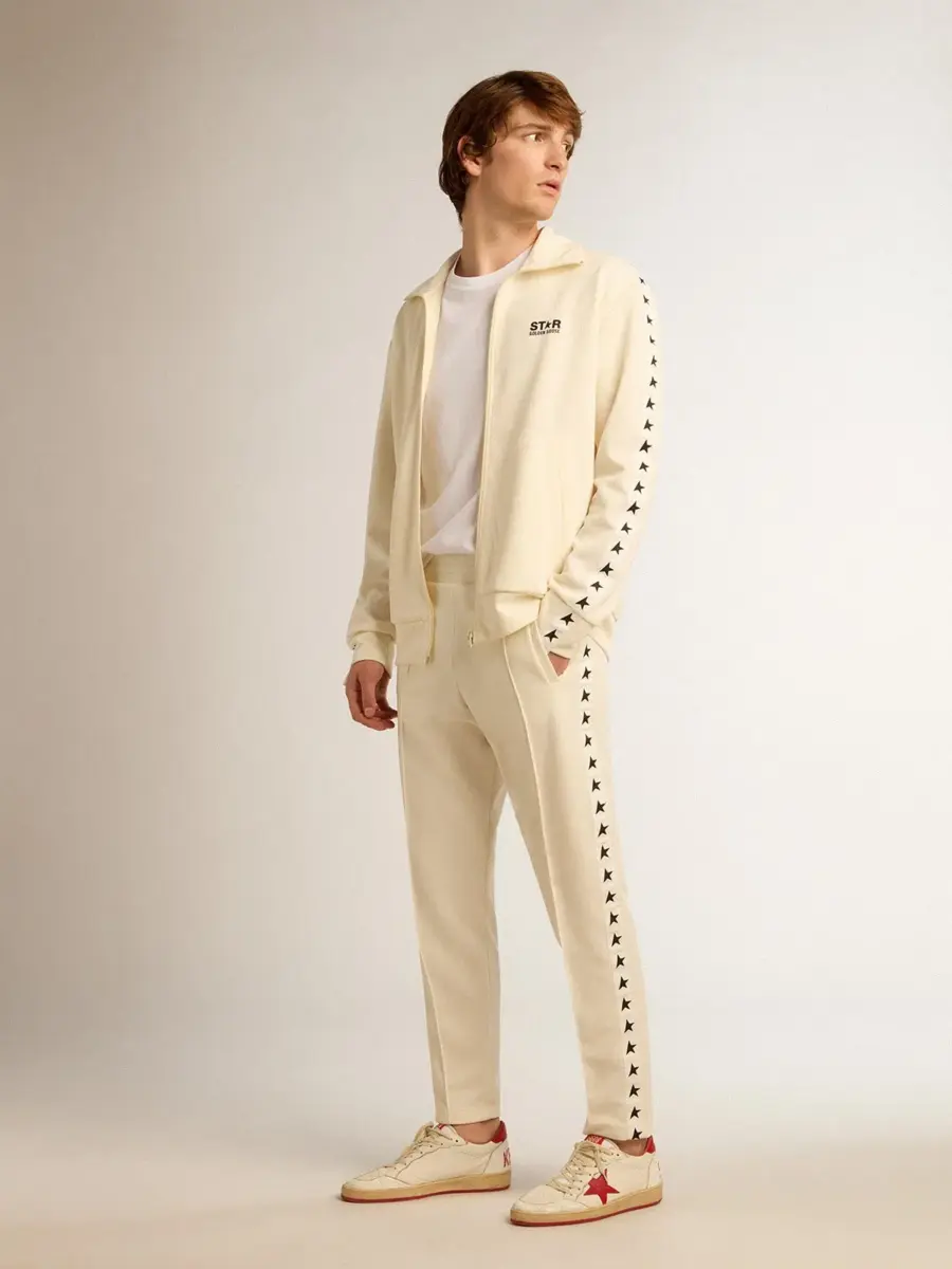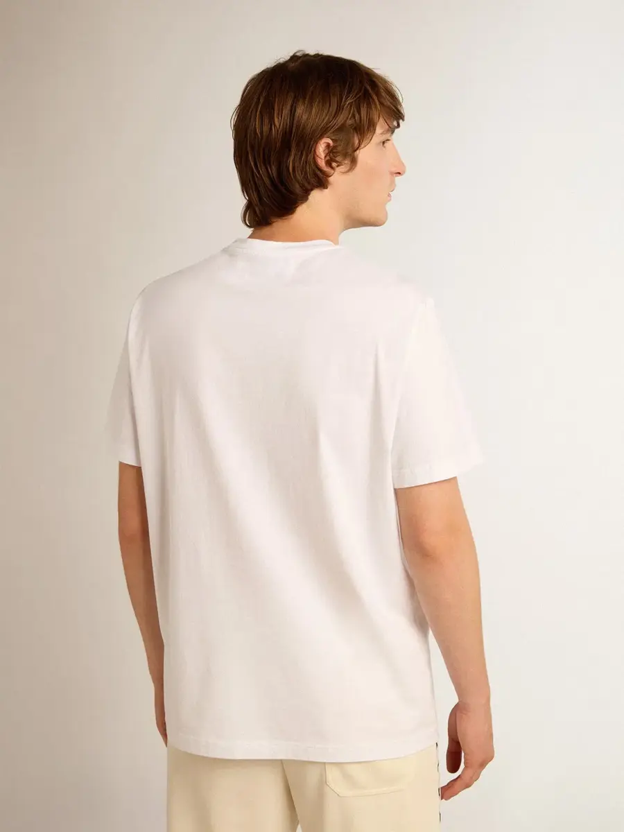 Una colección con un espíritu informal pero versátil: inspirada en los años setenta, tiene un atractivo vintage atemporal, adecuado para cualquier ocasión. Esta camiseta de cuello redondo y corte recto, confeccionada en algodón puro blanco, presenta una estrella negra en la parte delantera. Una prenda versátil para todos tus looks.