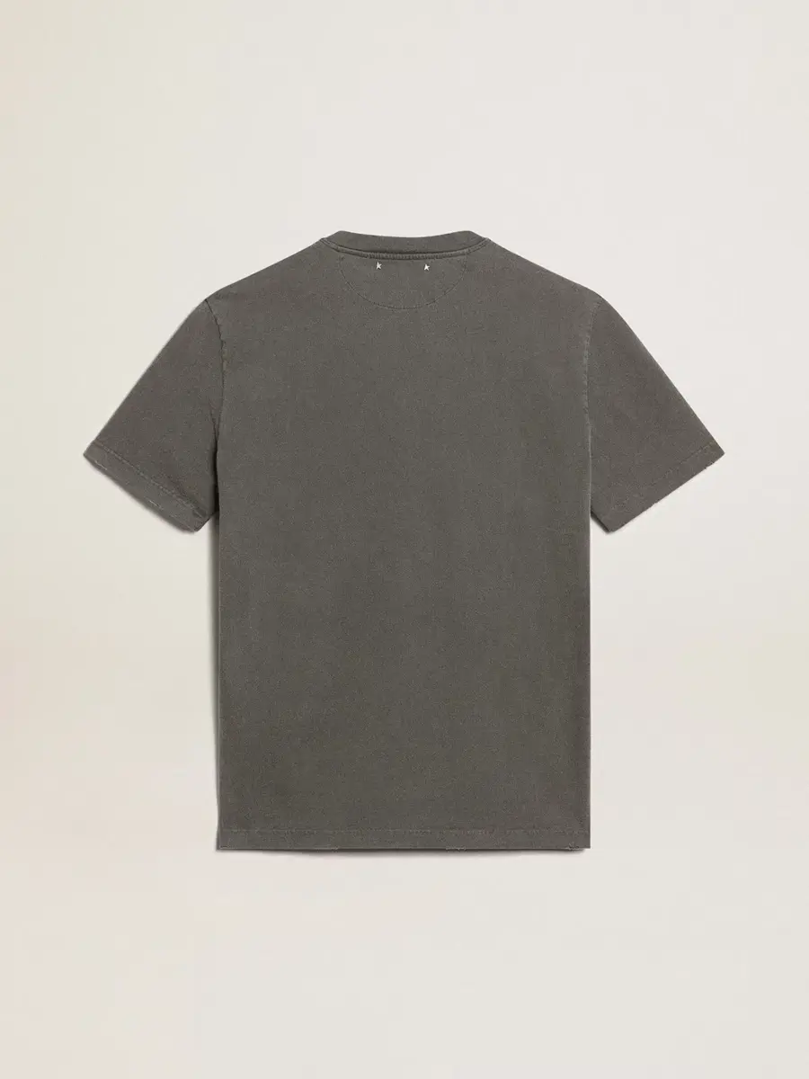 Una colección única y atemporal que engloba la esencia de Golden Goose, diseñada para acompañarte cada día y acompañarte en tus altibajos, llueva o haga sol. Esta camiseta de corte regular en algodón gris antracita con tratamiento desgastado presenta el logotipo Golden realizado con un tratamiento resistente.