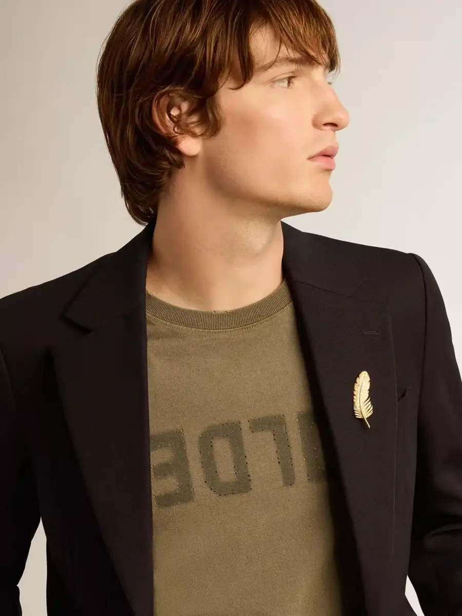 Camiseta verde oliva para hombre con letras doradas