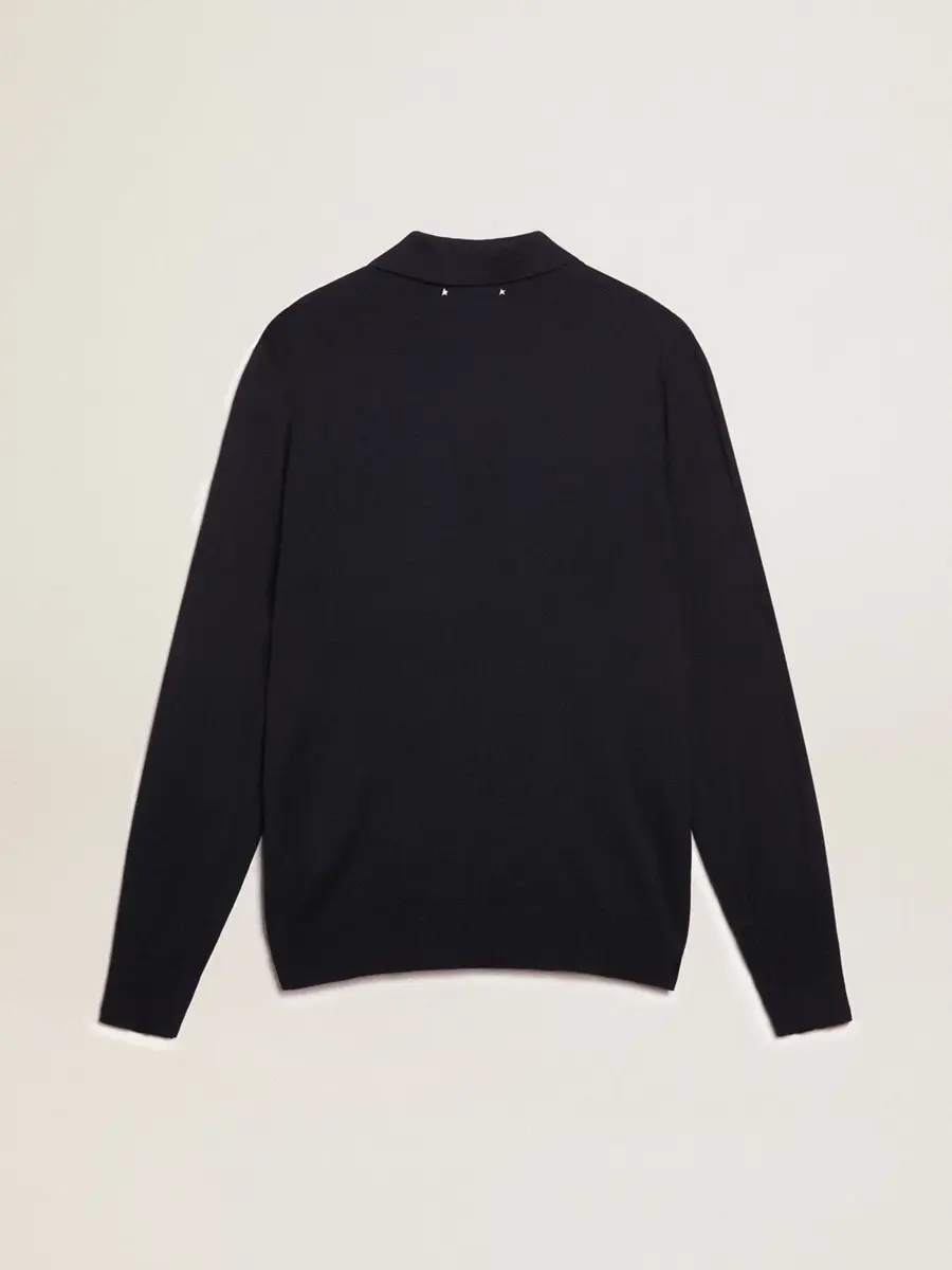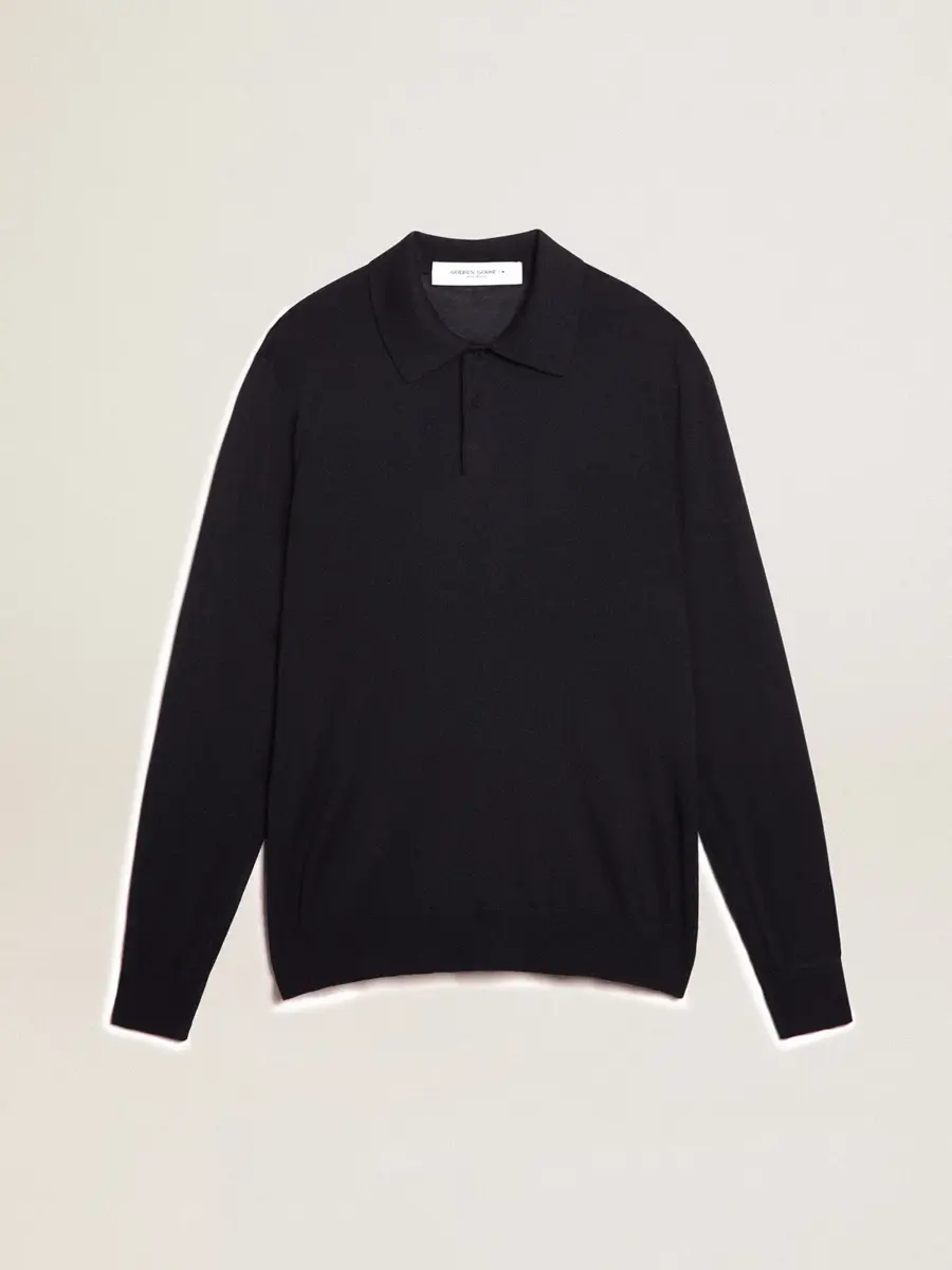 Una colección única y atemporal que encapsula el ADN de Golden Goose, diseñada para acompañarte cada día, en las buenas y en las malas, llueva o haga sol. Este polo de hombre de lana merino azul marino tiene mangas largas y cuatro botones centrales.