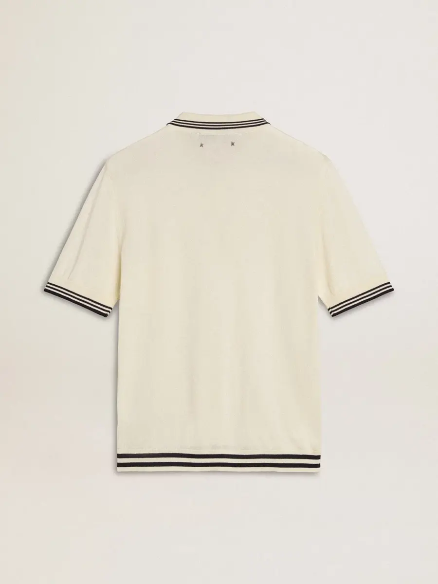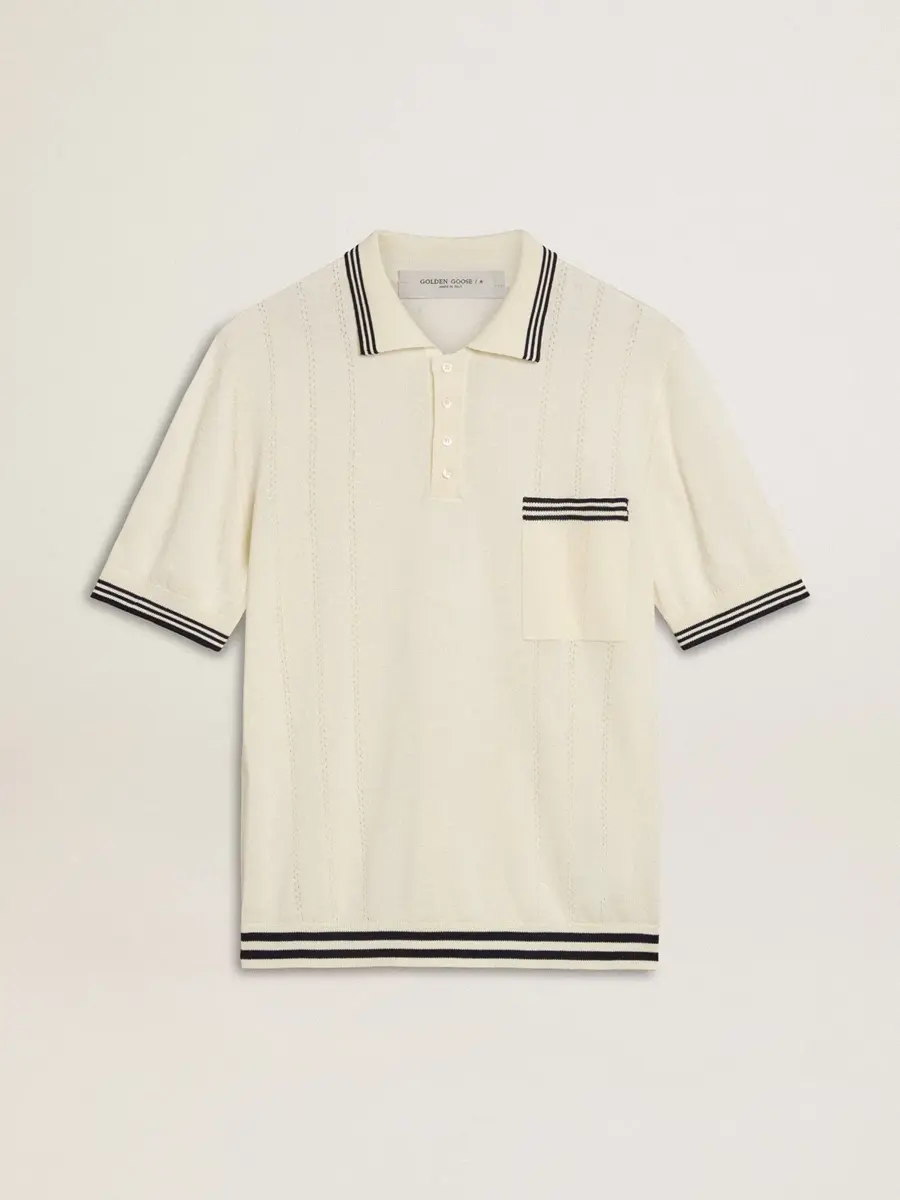 Inspirada en la energía eléctrica de los años noventa, la colección celebra el poder ilimitado de los sueños compartidos. Movidos por la pasión, cada diseño captura el significado de la unión y el poder de la música. Este polo de algodón tejido en blanco desgastado presenta ribetes azules. El bolsillo delantero le da el toque final.