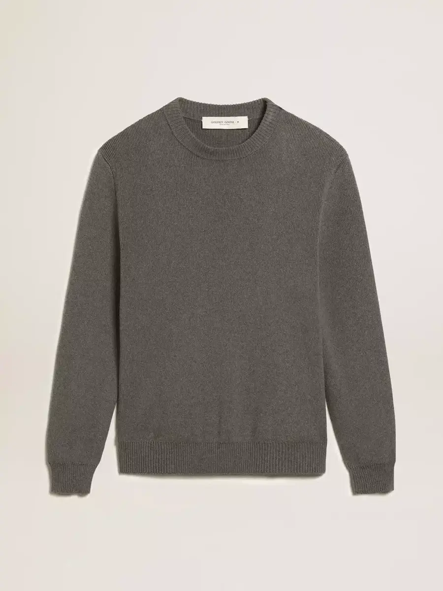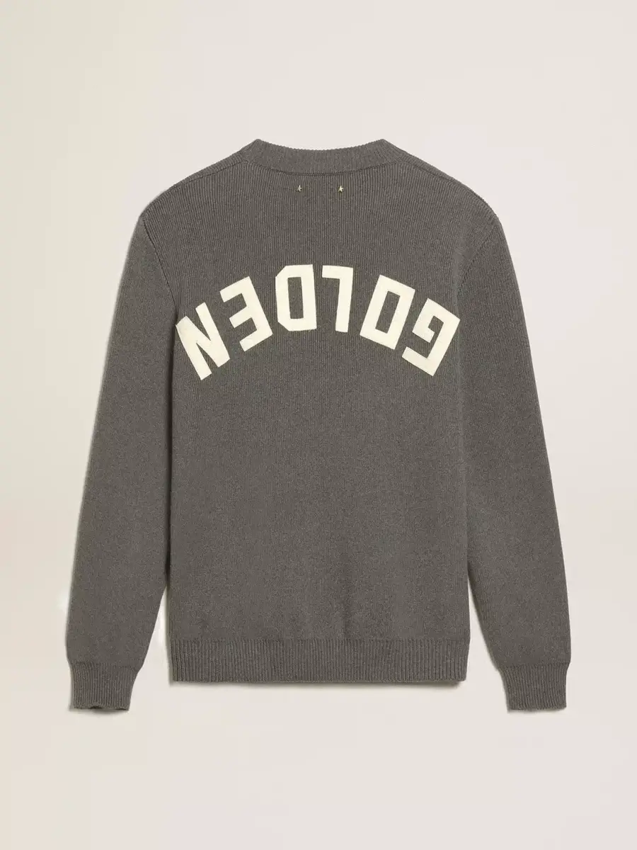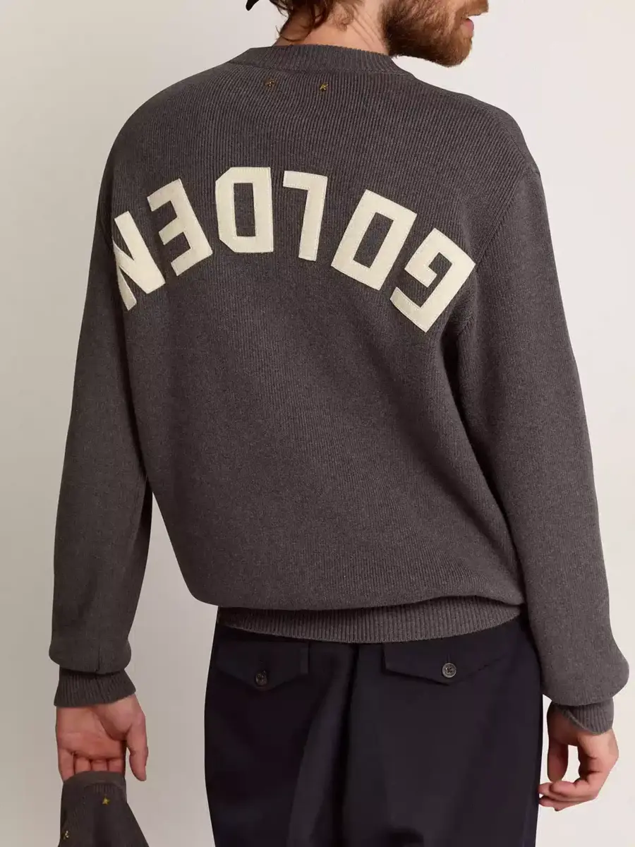 Jersey de cuello redondo para hombre en algodón gris oscuro con logotipo en la espalda