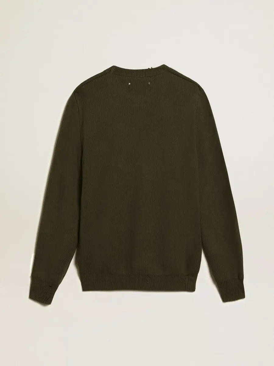Una colección única y atemporal que engloba la esencia de Golden Goose, diseñada para acompañarte cada día y acompañarte en tus altibajos, llueva o haga sol. Confeccionado en algodón verde militar, este jersey de cuello redondo y corte recto presenta un acabado desgastado.