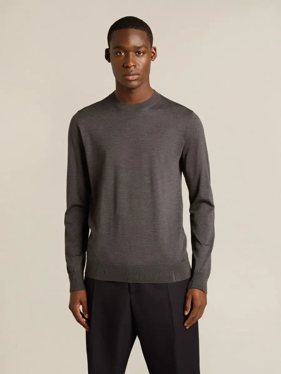 Una colección única y atemporal que engloba la esencia de Golden Goose, diseñada para acompañarte cada día y acompañarte en tus altibajos, llueva o haga sol. Este jersey de cuello redondo, confeccionado en lana gris oscuro jaspeado, presenta un corte recto.
