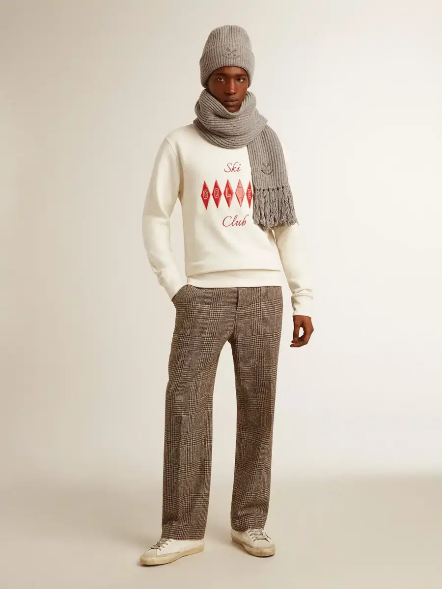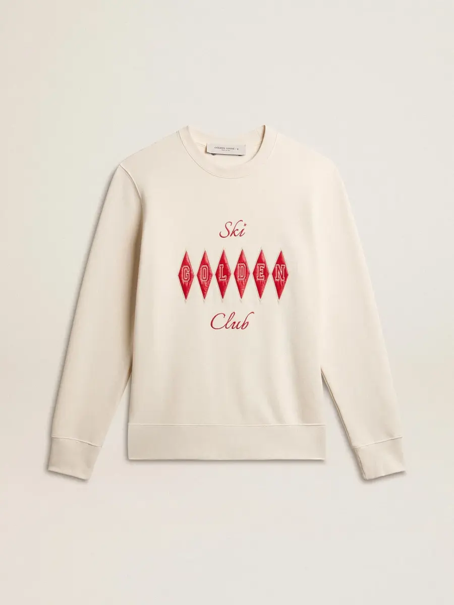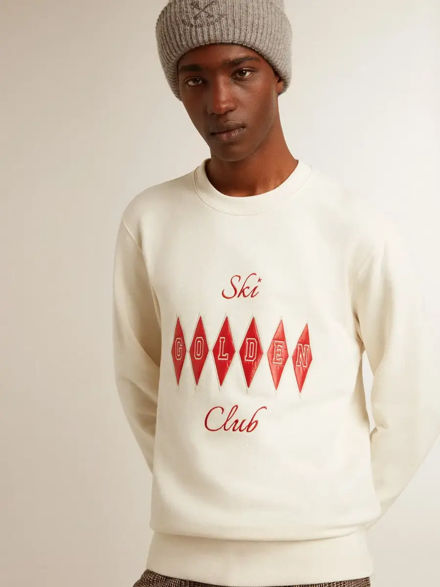 Una historia de amor con nuestra ciudad natal, Marghera. Donde todo comenzó. Nuestra última colección refleja el espíritu de nuestro lugar de origen, sus contrastes, su alma industrial y sus paisajes manufactureros, entrelazando inspiraciones tanto de la vibrante energía de la ropa de trabajo como de la refinada esencia de la sastrería tradicional. Con un corte regular, esta sudadera de algodón con cuello redondo presenta un bordado dorado y las letras «sky club» bordadas en rojo. La doble estrella en la espalda le da el toque final.