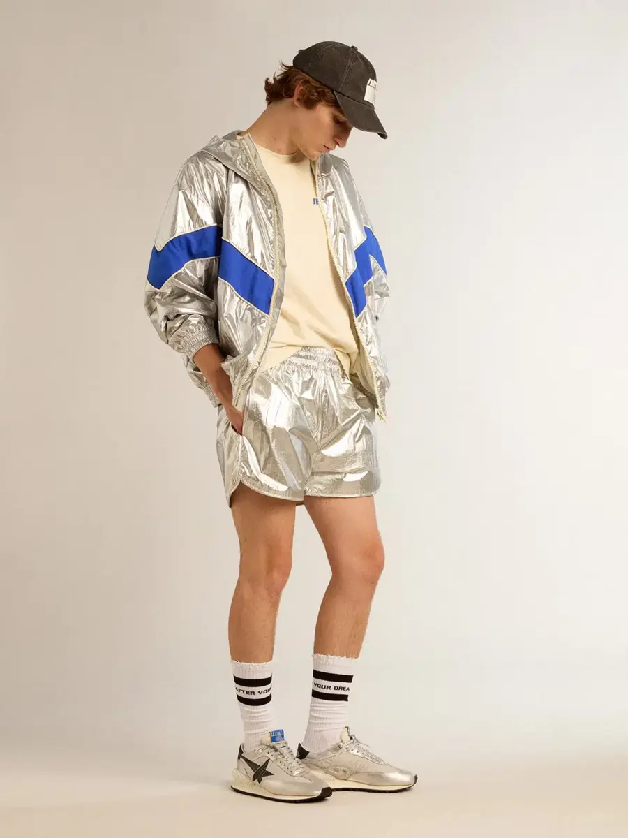 Sé el primero en valorar “Pantalones cortos de running para hombre en tejido plateado”