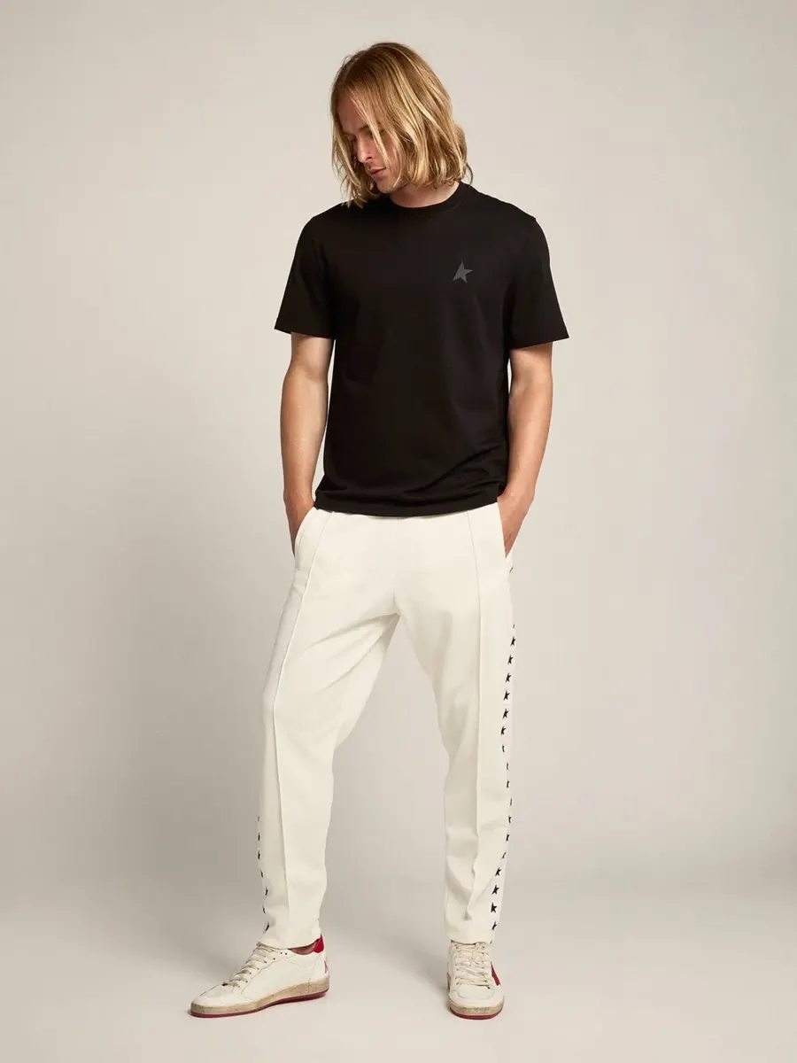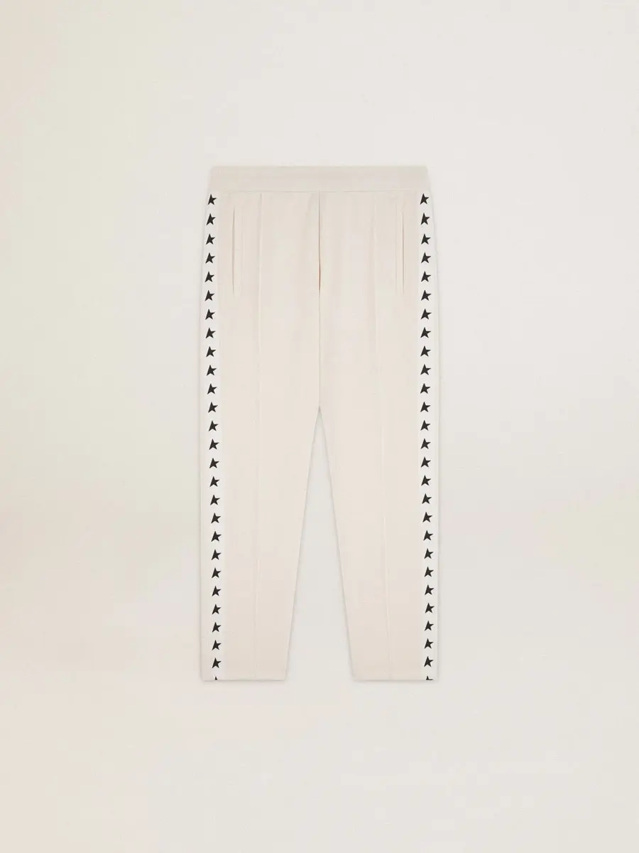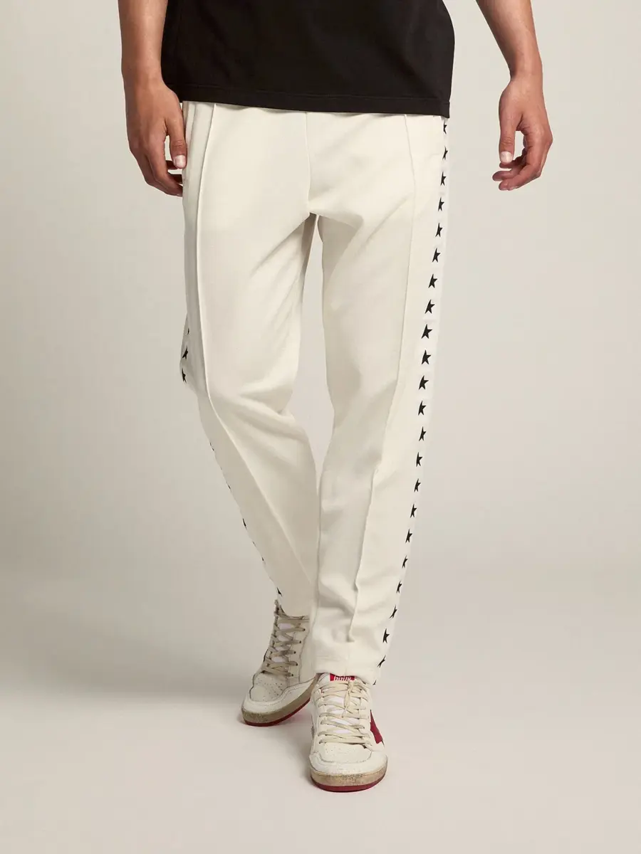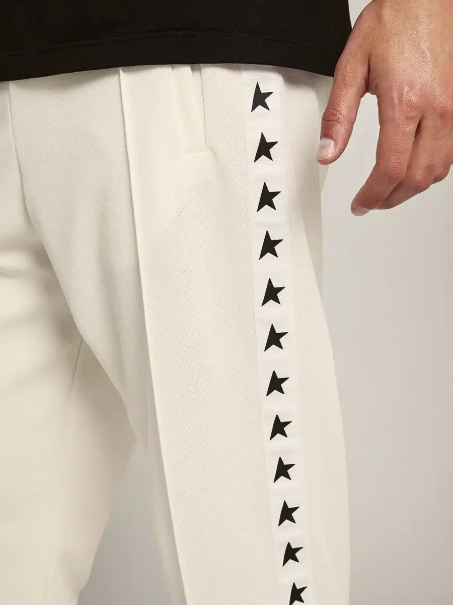 Pantalones de chándal blancos para hombre con estrellas negras en los laterales