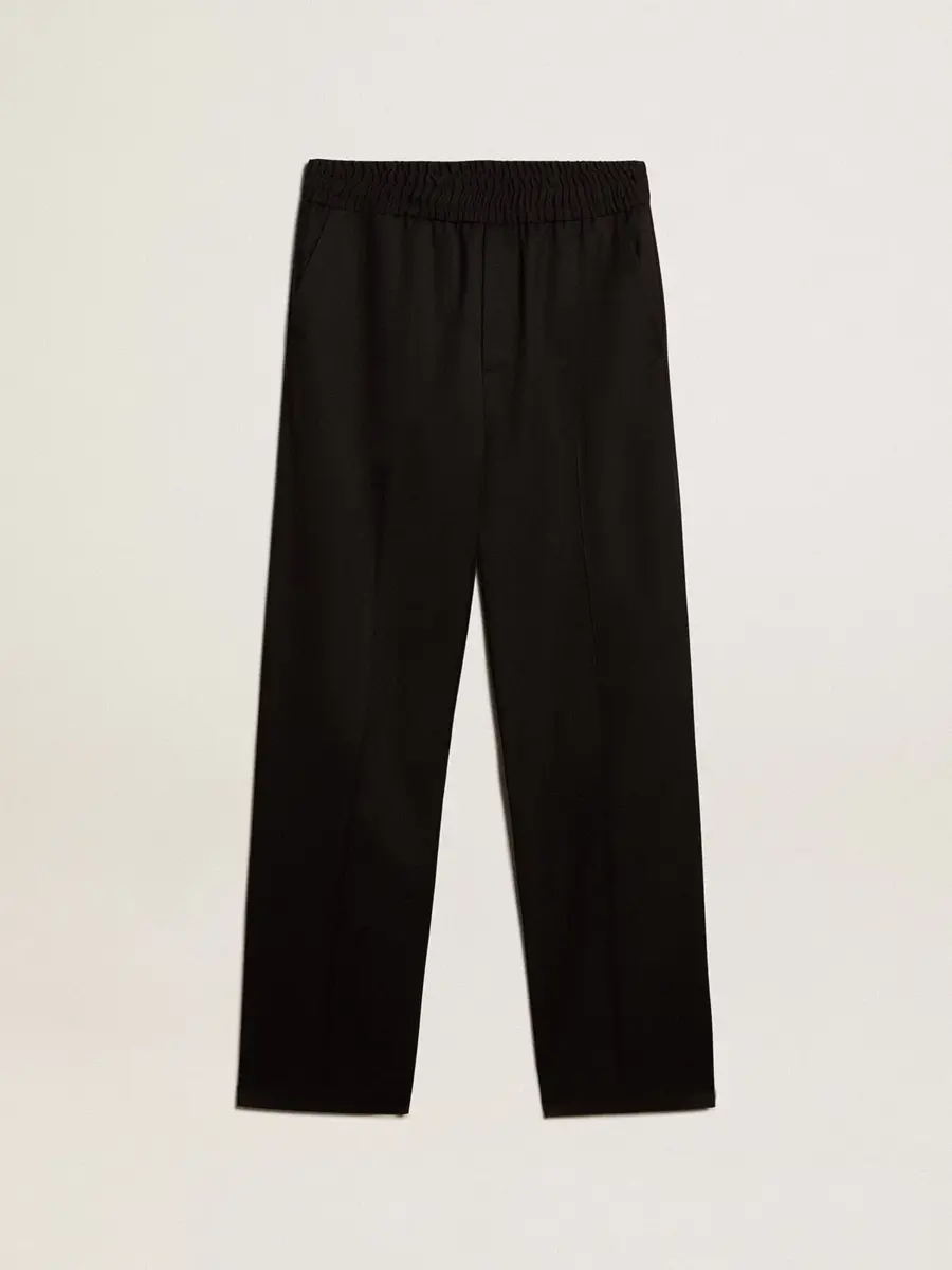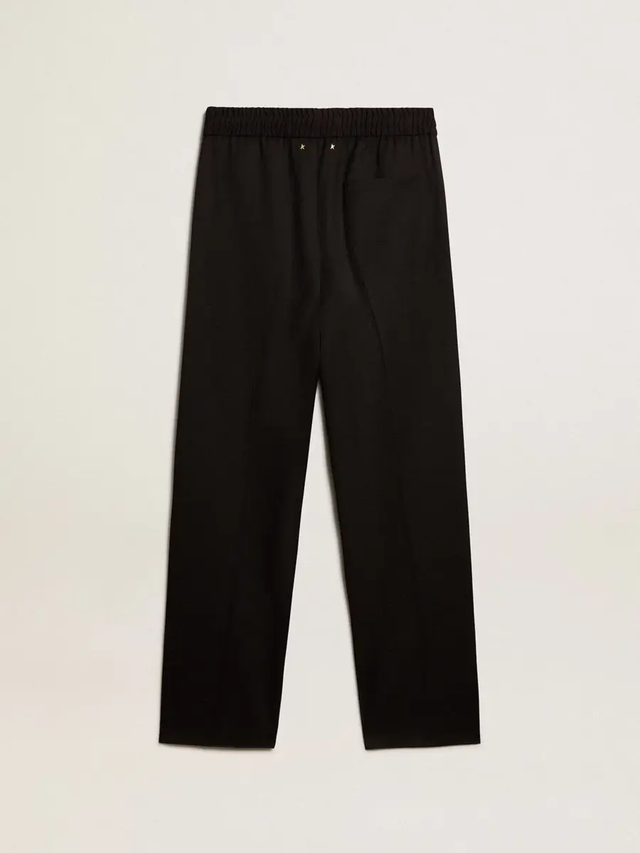 Una colección única y atemporal que encapsula el ADN de Golden Goose, diseñada para acompañarte cada día, en las buenas y en las malas, llueva o haga sol. Estos pantalones de chándal de lana negra presentan un corte holgado en las piernas y dos bolsillos laterales. La doble estrella en la parte trasera le da el toque final.