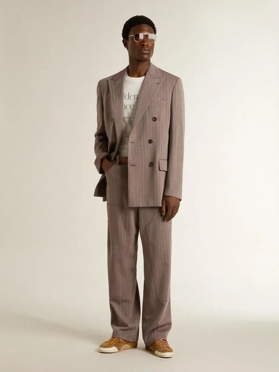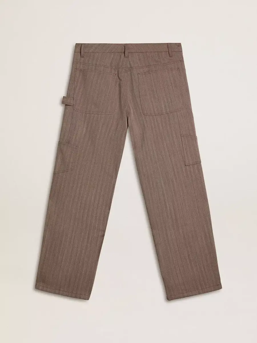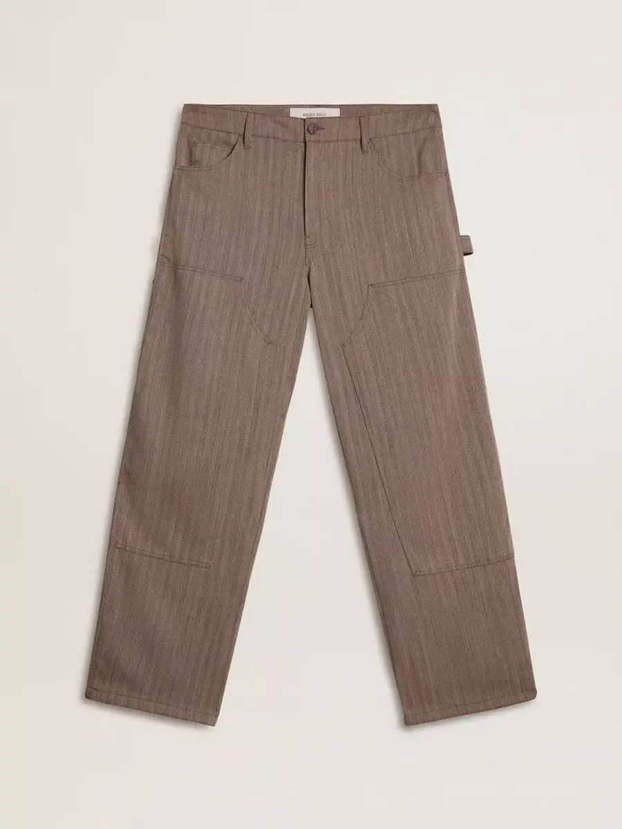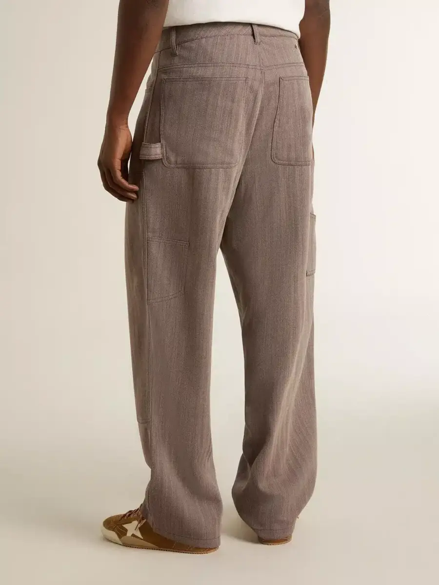 Inspirados en los icónicos años setenta, el espíritu desenfadado de esa época cobra vida con el primer lanzamiento de nuestra colección Otoño/Invierno 25. Estos pantalones de hombre en mezcla de lana virgen marrón claro cuentan con bolsillos delanteros y una presilla para el cinturón en el lado izquierdo. La doble estrella en la parte trasera añade el toque final.