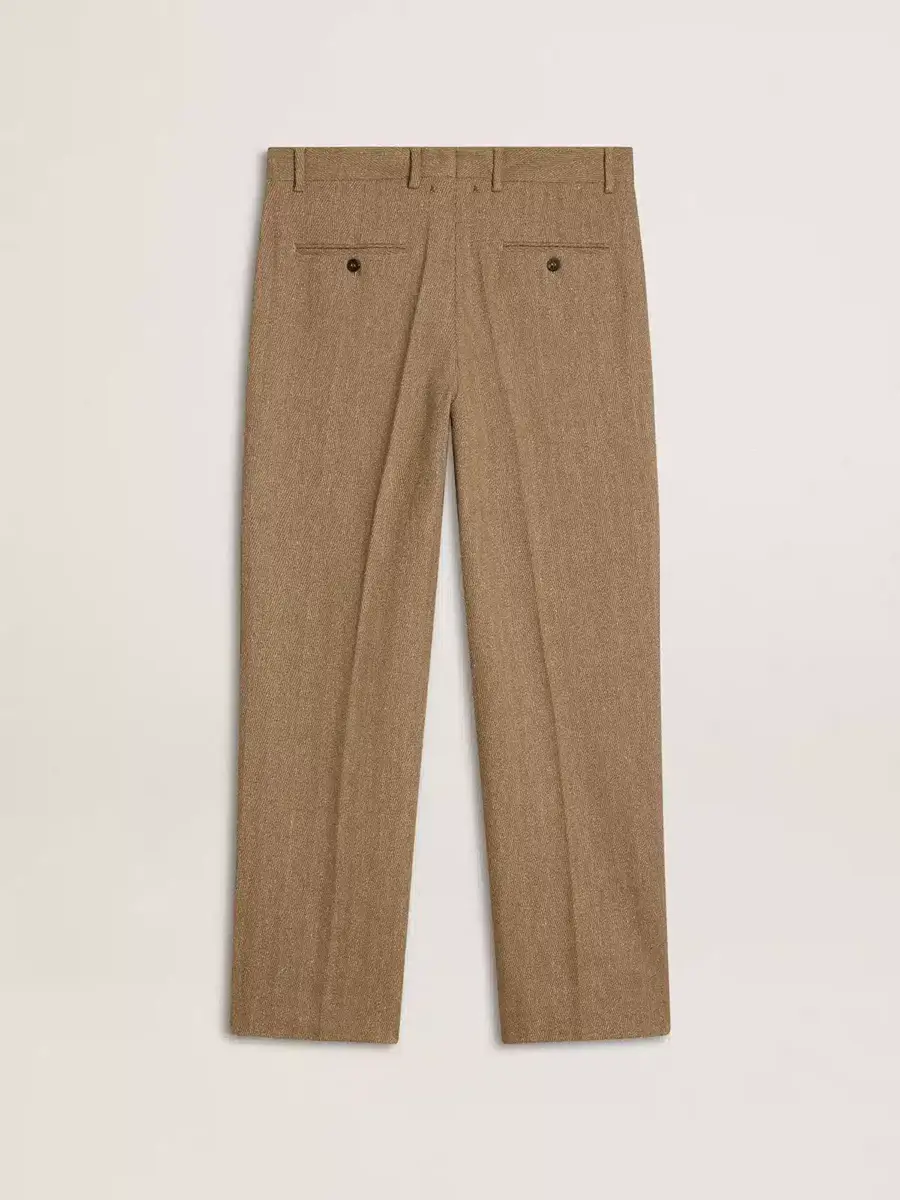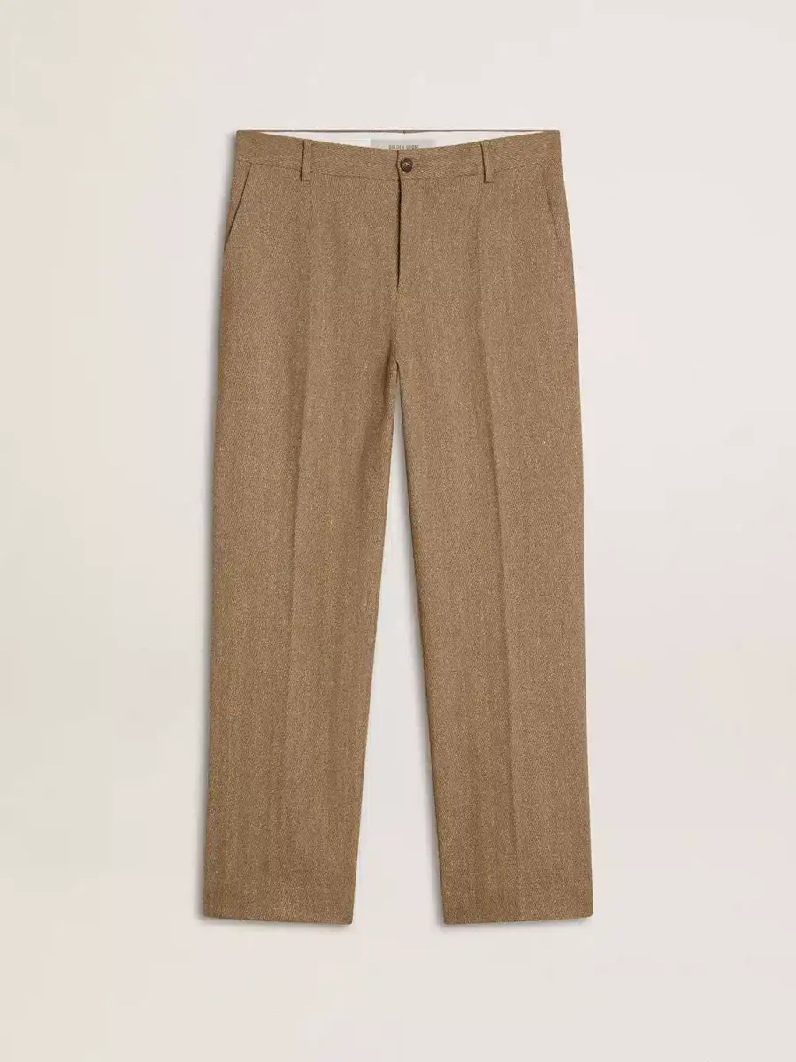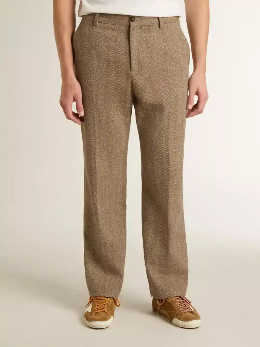 Pantalones de sastrería en mezcla de lino con estampado chevron color arena