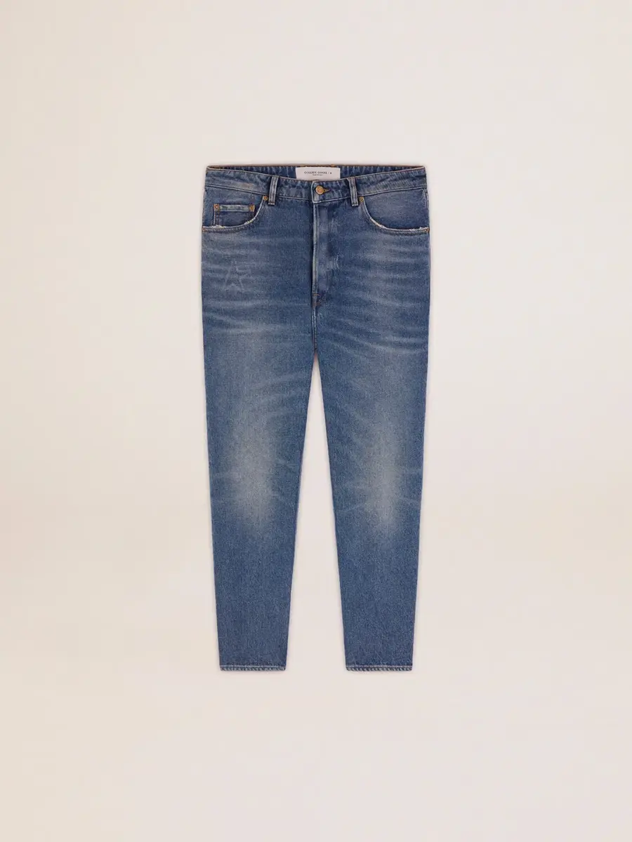 Una colección única y atemporal que engloba la esencia de Golden Goose, diseñada para acompañarte cada día y acompañarte en tus altibajos, llueva o haga sol. Estos vaqueros de lavado medio tienen un corte slim.