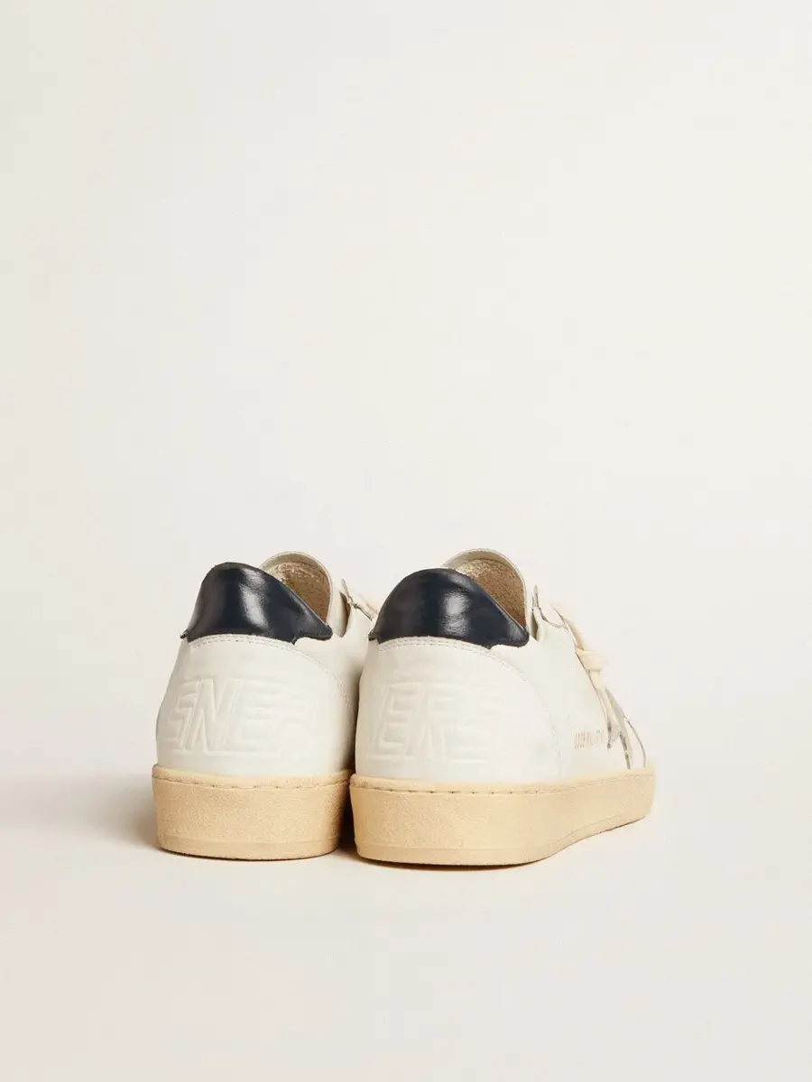 Soñando con los años ochenta. Nuestras zapatillas Ball Star tienen un aire universitario americano, a caballo entre el baloncesto y el skate. Este modelo, con parte superior de piel blanca, presenta una estrella de ante gris hielo y una lengüeta en el talón de piel brillante azul medianoche. Los cordones de color crema añaden el toque final: cosas bonitas que nunca pasan de moda.