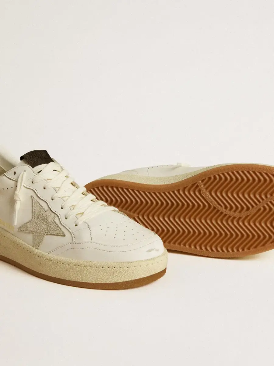 Soñando con los años ochenta. Nuestras zapatillas Ball Star 2 tienen un aire universitario americano, a caballo entre el baloncesto y el skate. Este modelo, con parte superior de piel blanca, cuenta con una estrella de ante gris hielo y una lengüeta de cuero negro brillante en el talón. Y los cordones blancos añaden el toque final: cosas bonitas que nunca pasan de moda.