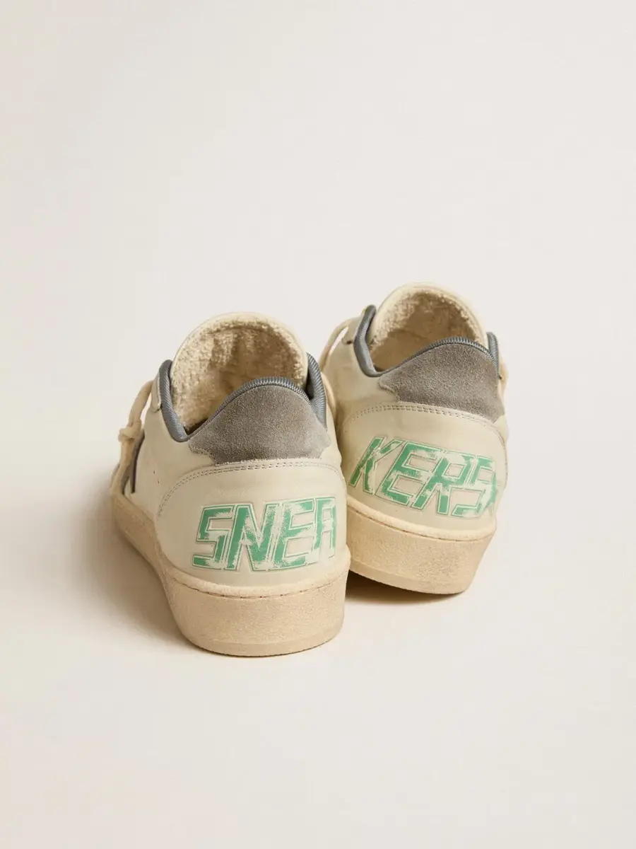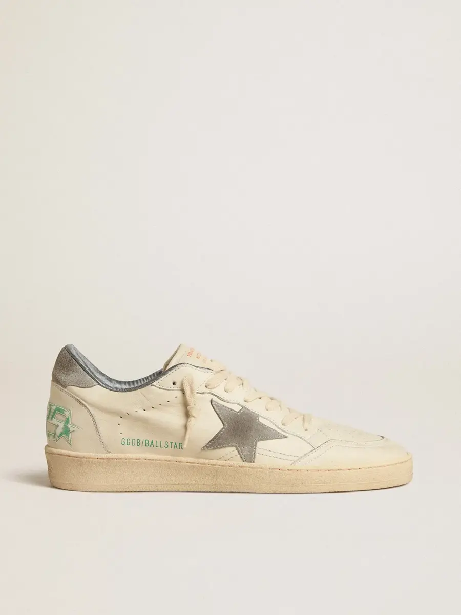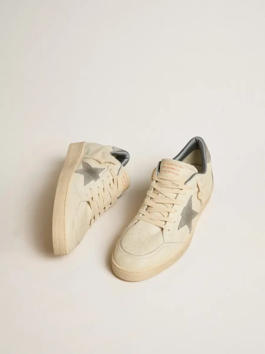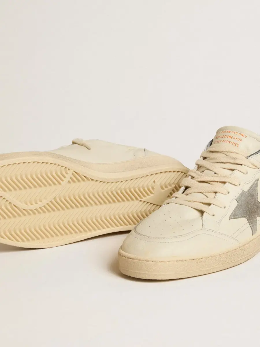Soñando con los años ochenta. Nuestras zapatillas Ball Star tienen un aire universitario americano, a caballo entre el baloncesto y el skate. Este modelo con parte superior de piel napa en color blanco roto cuenta con una estrella y una lengüeta en el talón de ante gris. Y los cordones en color blanco roto añaden el toque final: cosas bonitas que nunca pasan de moda.