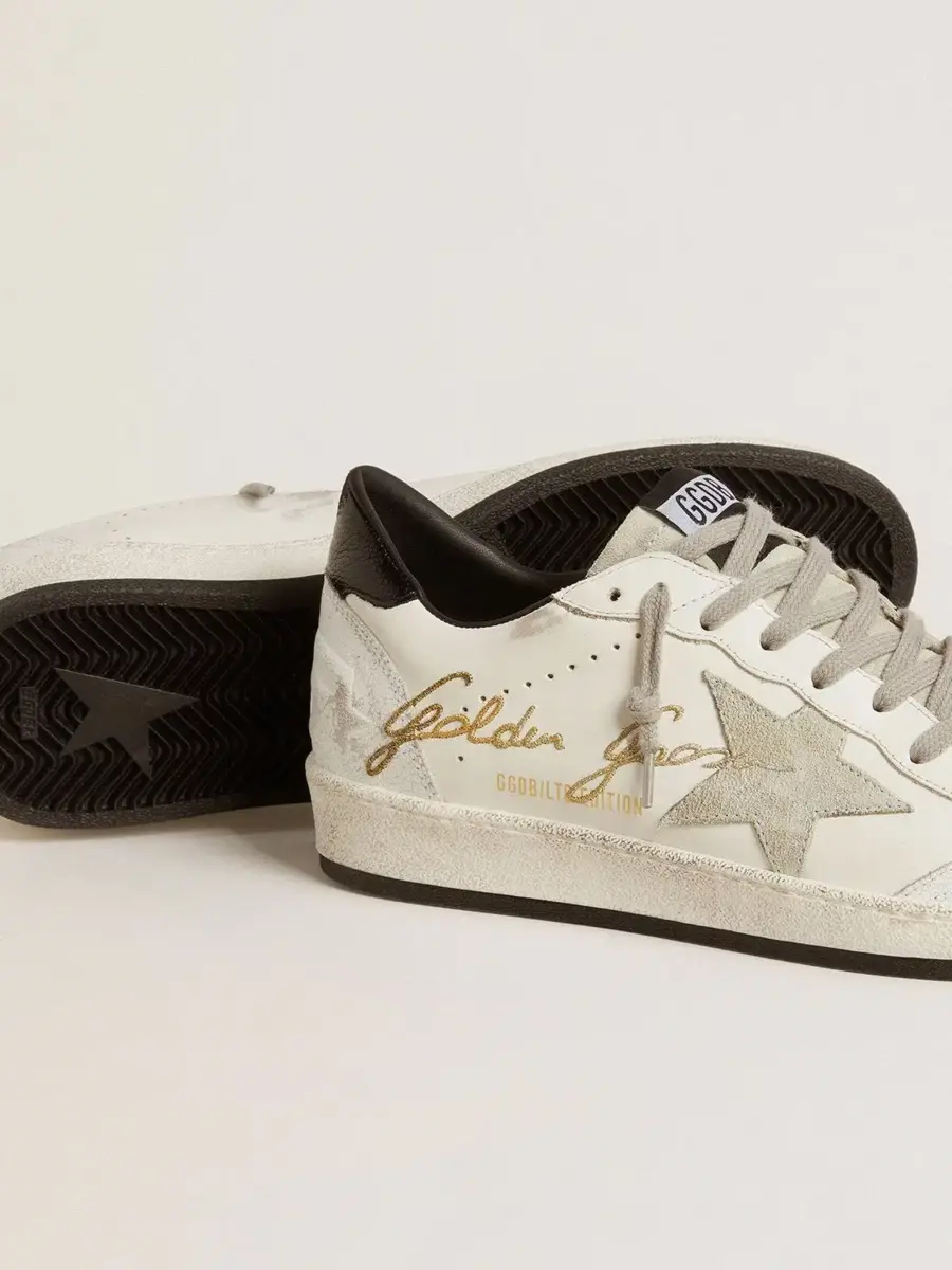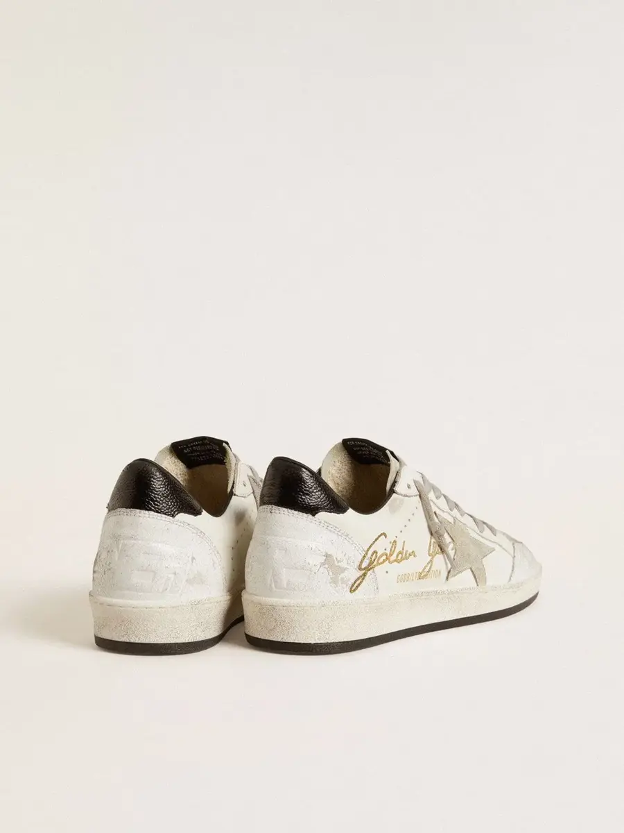 Soñando con los años ochenta. Nuestras zapatillas Ball Star tienen un aire universitario americano, a caballo entre el baloncesto y el skate. Con una parte superior de piel blanca adornada con la firma Golden Goose en contraste, este modelo para hombre cuenta con inserciones de ante gris hielo, incluida la estrella y la lengüeta, y una lengüeta en el talón de piel negra con efecto texturizado. Los insertos de piel craquelada blanca y los cordones gris hielo añaden el toque final: cosas bonitas que nunca pasan de moda.