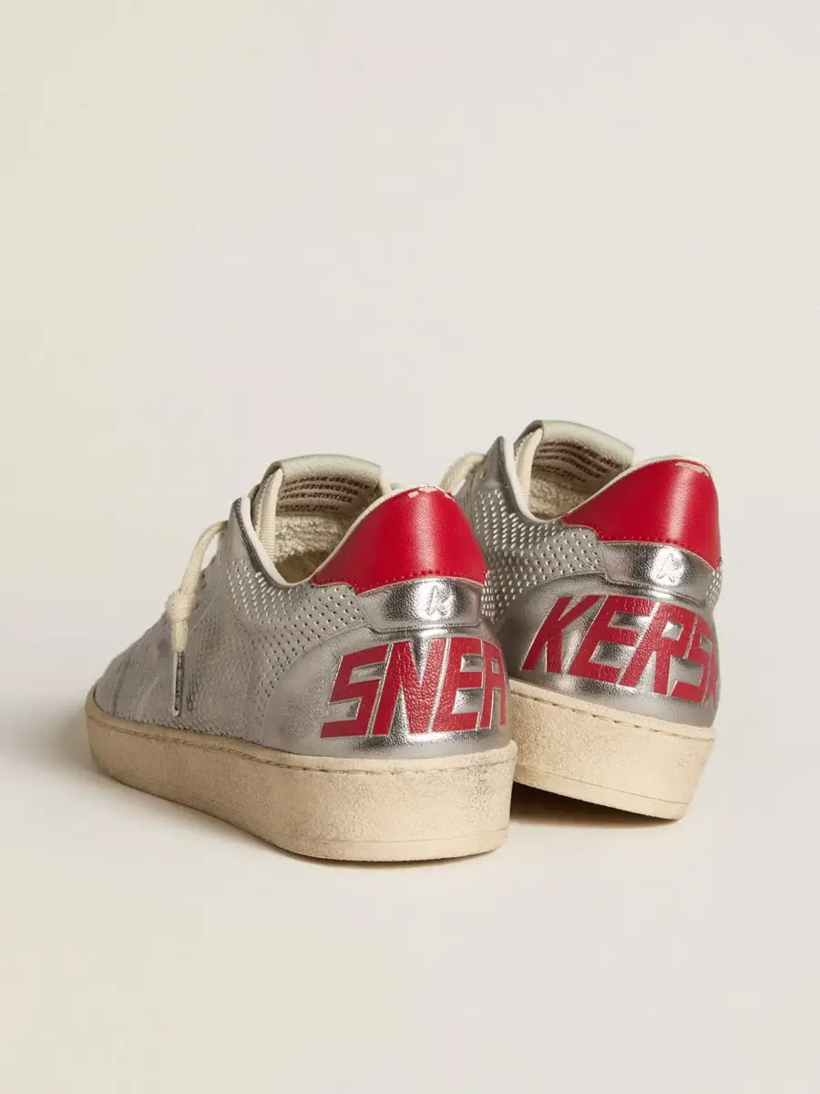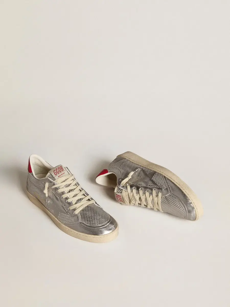 Bio-based Ball Star en plata metalizada con estrella plateada y lengüeta roja en el talón