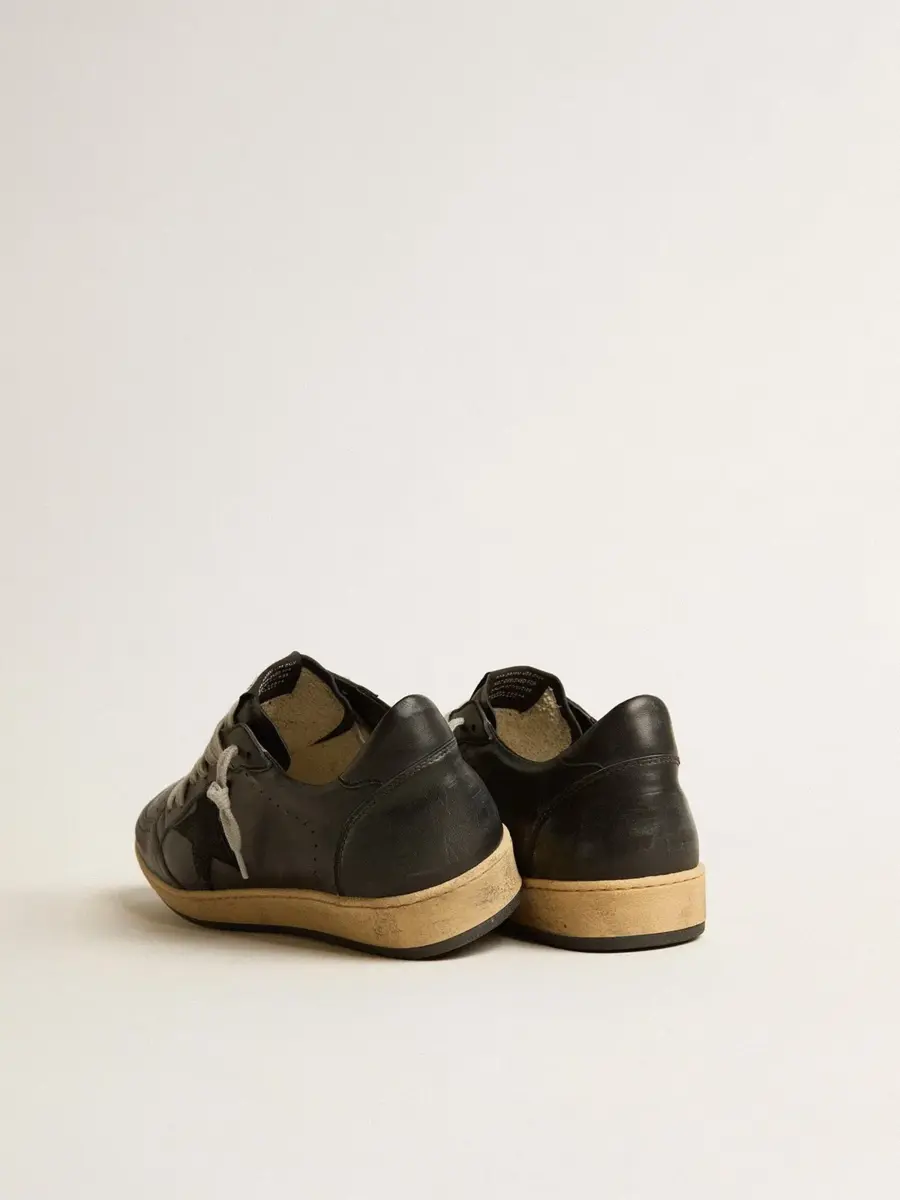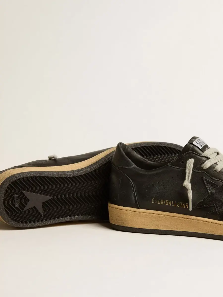 Zapatillas Ball Star para hombre en napa negra con estrella de ante y lengüeta del talón en napa