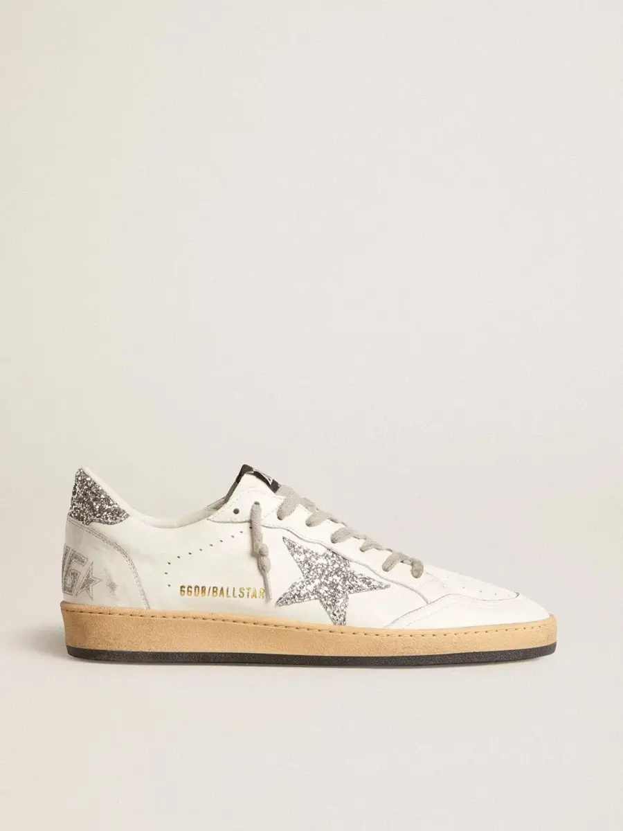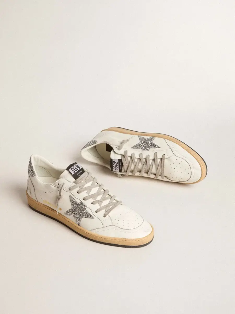 Una zapatilla diseñada para convertir tus momentos especiales en recuerdos inolvidables. Inspirada en el ambiente universitario estadounidense de los años 80, esta Ball Star presenta la palabra «Dreaming» en purpurina plateada en el talón. Este modelo para hombre, con una parte superior de piel napa blanca, destaca por su estrella plateada y sus detalles de piel craquelada blanca, como la puntera y la inserción en la parte trasera.