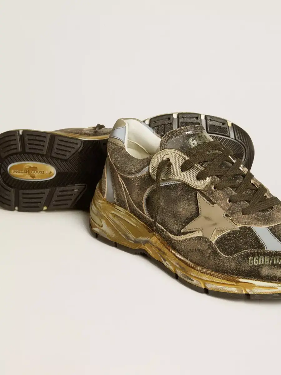 Un alma con muchas historias que contar: nuestras zapatillas Dad-Star tienen un estilo atemporal, creadas para pasar de generación en generación. Con una gran cantidad de detalles sofisticados, como la suela amarillenta que expresa la idea de colgar los zapatos al sol, esta versión para hombre presenta una parte superior de ante negro y nailon plateado, acentuada con una estrella de cuero caqui y una lengüeta en el talón. La lengüeta plateada y los cordones negros añaden el toque final.