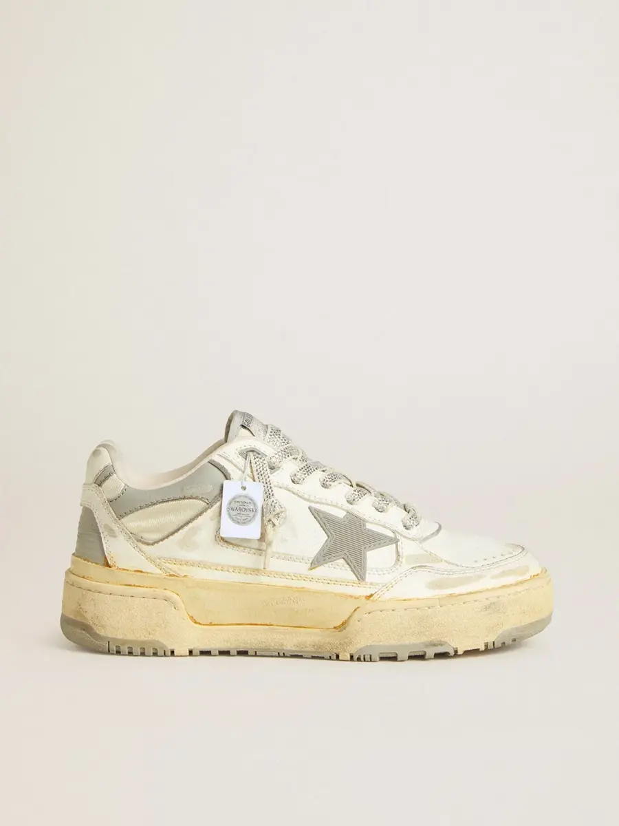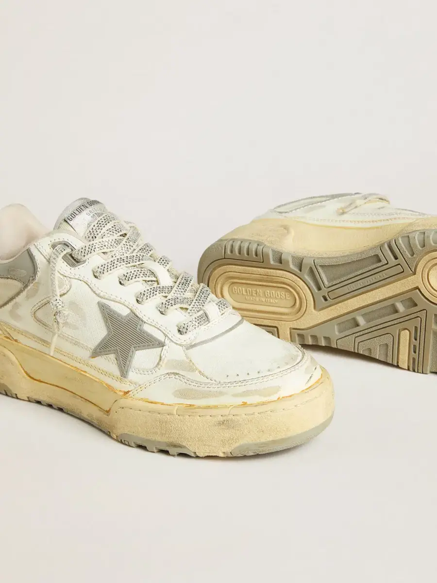 Inspiradas en los días de gloria del baloncesto estadounidense, las zapatillas Forty2 canalizan el encanto imperecedero de los años 90. Su silueta gruesa de caña baja y su diseño deportivo evocan un viaje legendario, celebrando el espíritu indomable del eterno soñador. Con una construcción artesanal única, esta versión para hombre en piel blanca cuenta con una estrella gris de TPU con efecto texturizado en 3D. Los cordones adornados con cristales Swarovski añaden el toque final.