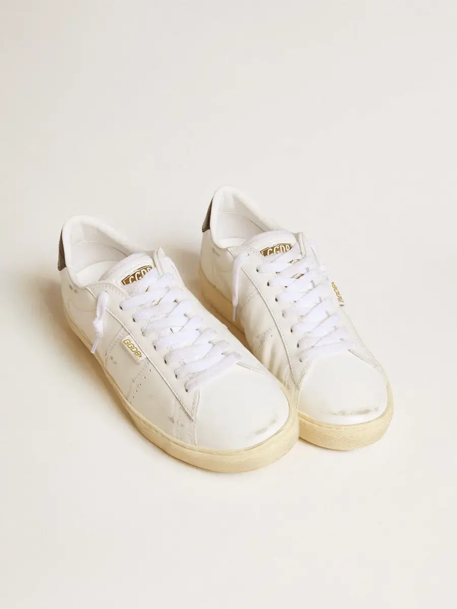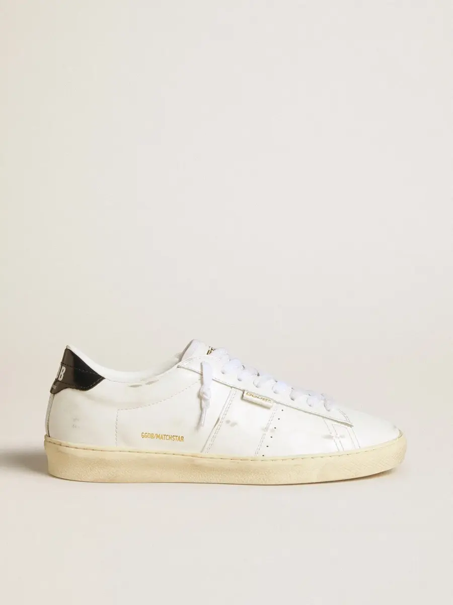 Un homenaje a la época dorada del tenis de los años 70. Nuestro modelo Matchstar es un escenario de sueños y estilo en constante evolución. Con un acabado desgastado, este modelo con parte superior de piel blanca cuenta con una lengüeta en el talón de piel azul oscuro con las letras GGDB en blanco. Los cordones blancos añaden el toque final.