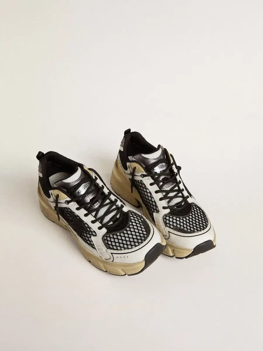 • Parte superior de cuero blanco y malla negra