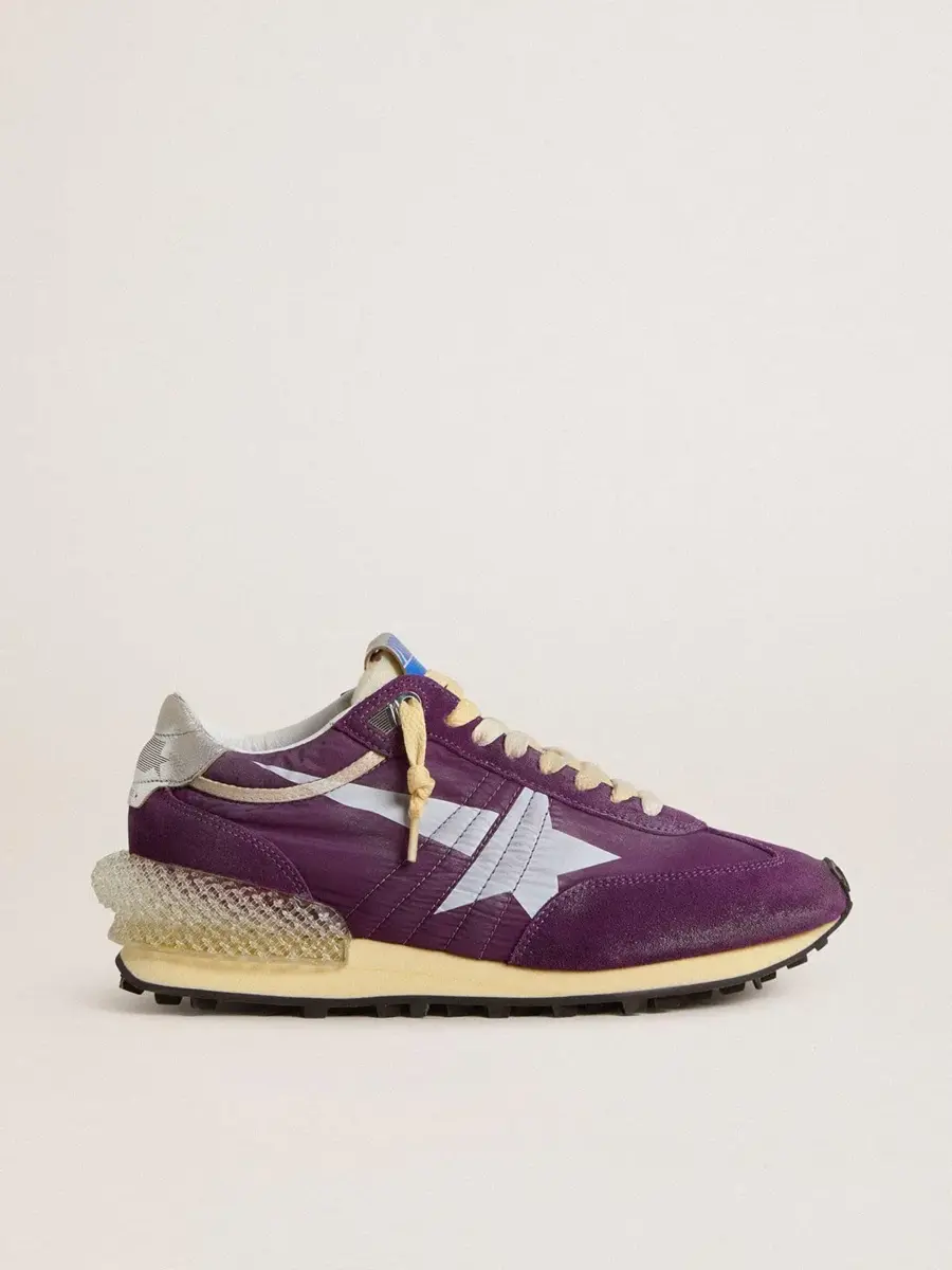 Inspiradas en el atletismo, con un toque setentero. Día tras día, nuestras nuevas zapatillas Marathon están diseñadas para que sigas corriendo tras tus sueños, rindiendo homenaje al maratón que es la vida. Este modelo para hombre presenta una parte superior de nailon morado con inserciones de ante morado, una estrella blanca y una lengüeta en el talón de cuero plateado. La zona de la lengüeta del talón se caracteriza por la incorporación de un estabilizador totalmente 3D, una característica icónica de esta forma que añade dinamismo y acentúa la amortiguación como nunca antes. El look se completa con cordones blancos desgastados y una suela con estrellas que causan una impresión verdaderamente única.