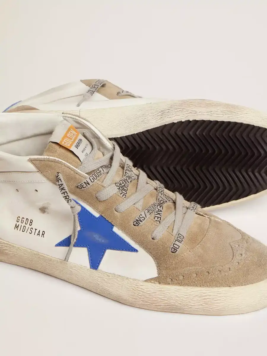 Versatilidad y elegancia únicas: las zapatillas Mid Star aportan un toque refinado a su inspiración en la escena skater de los años ochenta. Estas zapatillas para hombre con parte superior de piel blanca cuentan con inserciones de ante gris paloma y una lengüeta y una estrella de piel azul en el talón. Los detalles brogue y los cordones gris hielo con el logotipo negro en contraste completan el look.