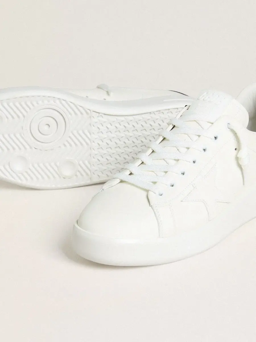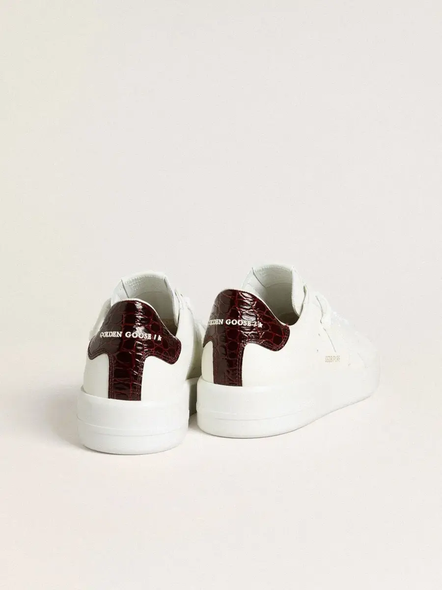 Cuando el minimalismo de la forma se une a la fuerza de los detalles: nuestras zapatillas Purestar combinan un estilo discreto con una comodidad extrema gracias a su tecnología de absorción de impactos. Confeccionado en piel blanca, este modelo para hombre presenta una estrella de piel blanca y una lengüeta en el talón de piel con estampado de cocodrilo en color burdeos. Los cordones blancos completan el look.