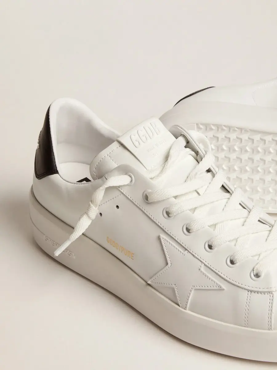 Cuando el minimalismo de la forma se une a la fuerza de los detalles: nuestras zapatillas Purestar combinan un estilo discreto con una comodidad extrema gracias a su tecnología de absorción de impactos. Este modelo para hombre, confeccionado en piel blanca, cuenta con una estrella de piel blanca y una lengüeta trasera de piel beige con estampado de cocodrilo. Los cordones blancos completan el look.