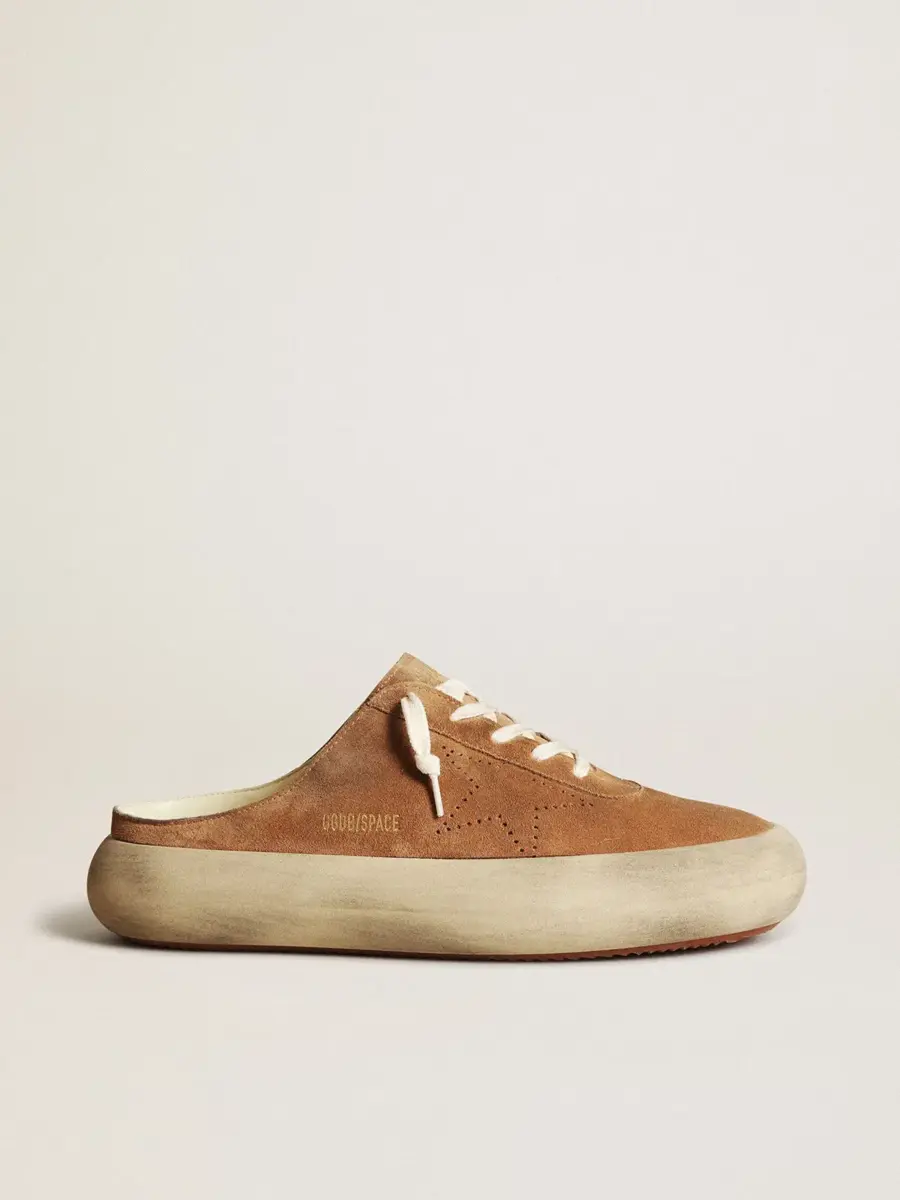 Sabots Space-Star para hombre en ante color tabaco con estrella perforada