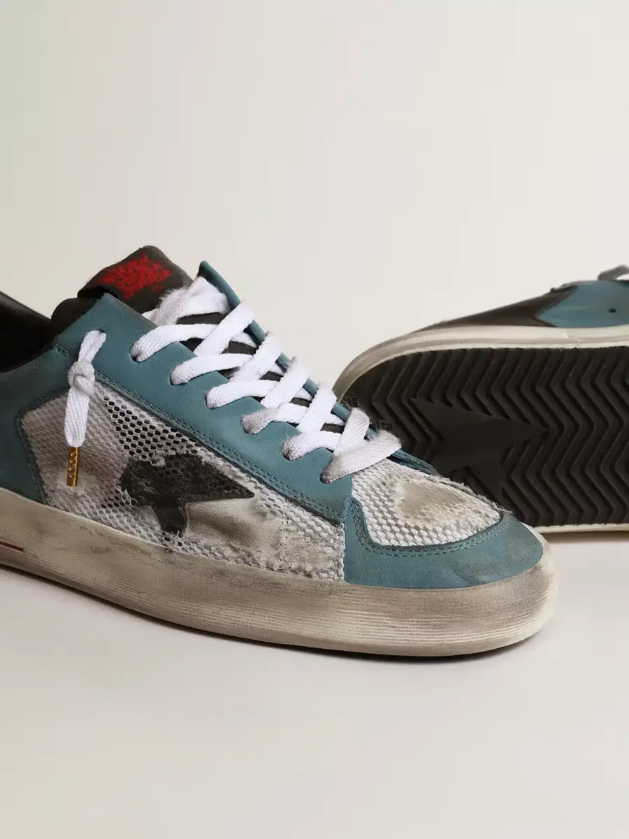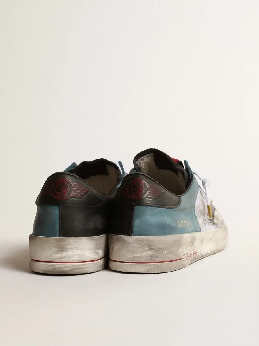 Los gloriosos años noventa plasmados en unas zapatillas. Las zapatillas Stardan rinden homenaje a los iconos del baloncesto de esa década, sin perder de vista el presente. Esta versión con parte superior de piel cuenta con una estrella de ante negro y malla perforada para conseguir el característico aspecto desgastado. La puntera color petróleo y la lengüeta negra en el talón con letras rojas completan el look.