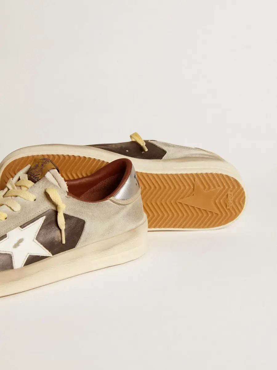 Los gloriosos años noventa plasmados en unas zapatillas. Las zapatillas Stardan rinden homenaje a los iconos del baloncesto de esa década, sin perder de vista el presente. Esta versión, con parte superior de ante gris hielo y piel negra, cuenta con una estrella de piel blanca y una lengüeta metálica plateada en el talón. Los ribetes de algodón color crema y los cordones blancos con efecto amarillento añaden el toque final.