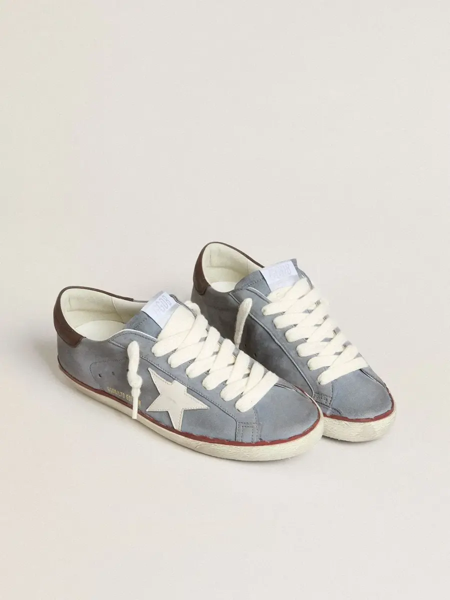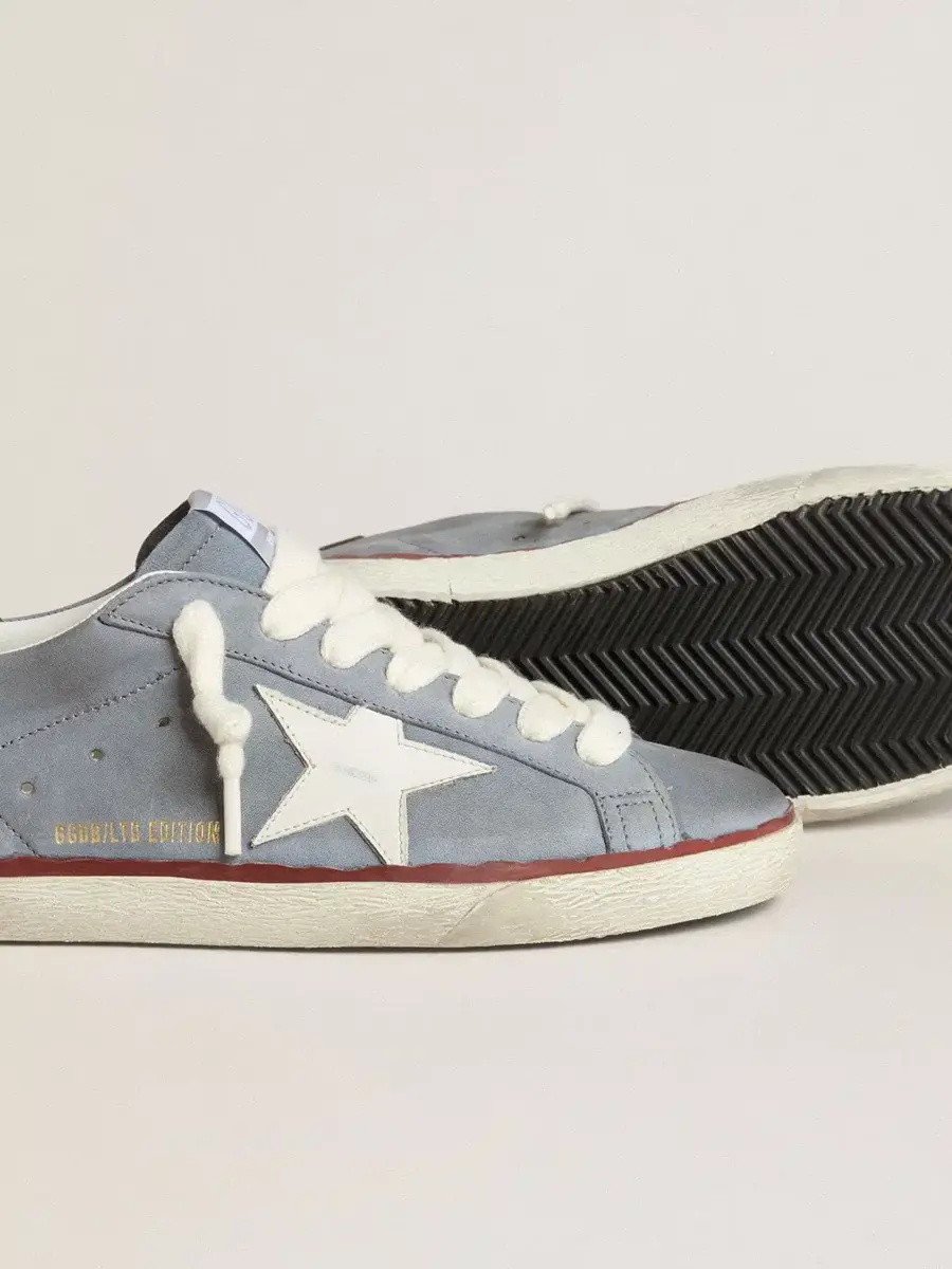 Un icono atemporal, pero en constante evolución. En Golden, nos encanta retomar nuestros clásicos y reelaborarlos constantemente, siempre desde un nuevo ángulo. Estas Super-Star con parte superior de piel nobuk azul claro cuentan con una estrella de piel blanca y una lengüeta marrón en el talón. La franja roja sobre la suela y los cordones blancos añaden el toque final.