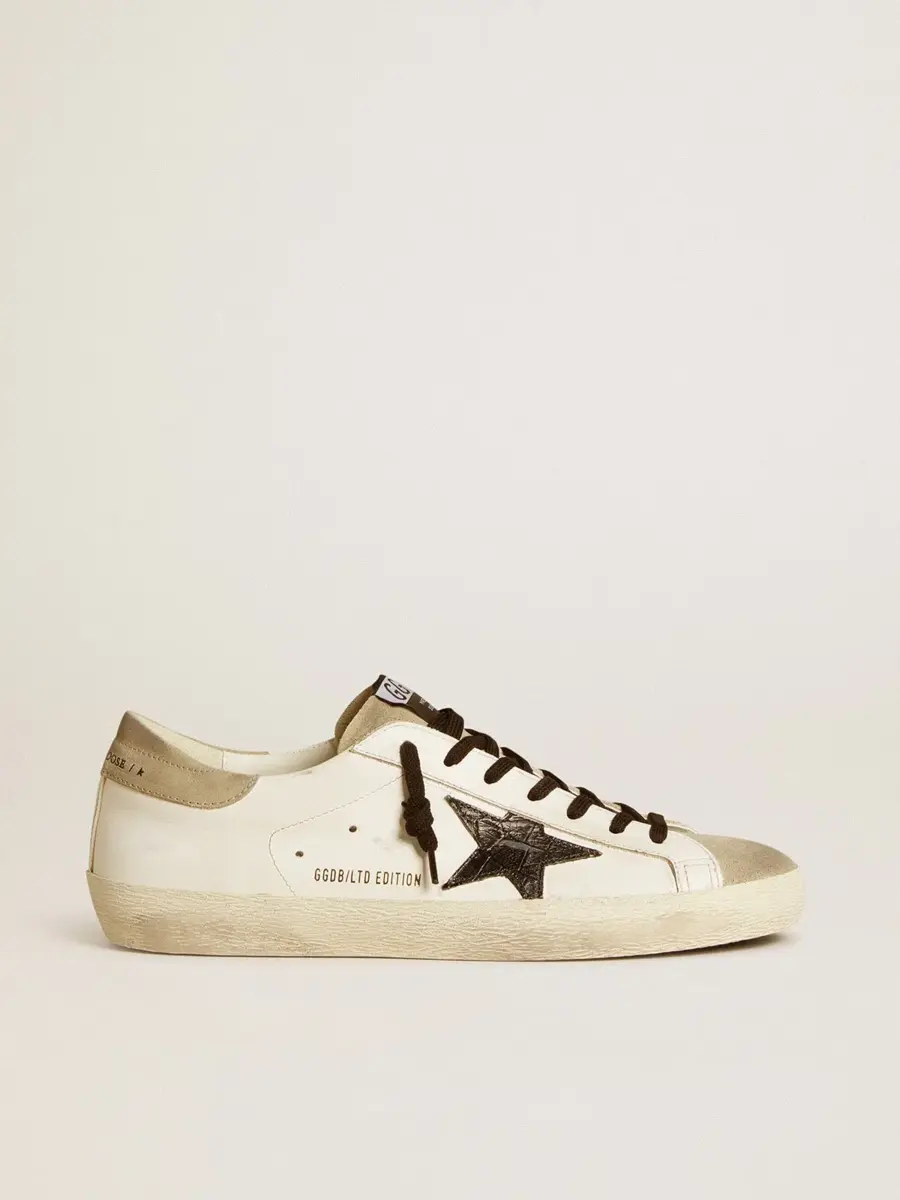 Un icono atemporal, pero en constante evolución. En Golden, nos encanta retomar nuestros clásicos y reelaborarlos constantemente, siempre desde un nuevo ángulo. Estas Super-Star con parte superior de piel blanca cuentan con una estrella de piel con estampado de cocodrilo negro y detalles de ante gris paloma, como la lengüeta del talón y la lengüeta. Los cordones negros añaden el toque final.