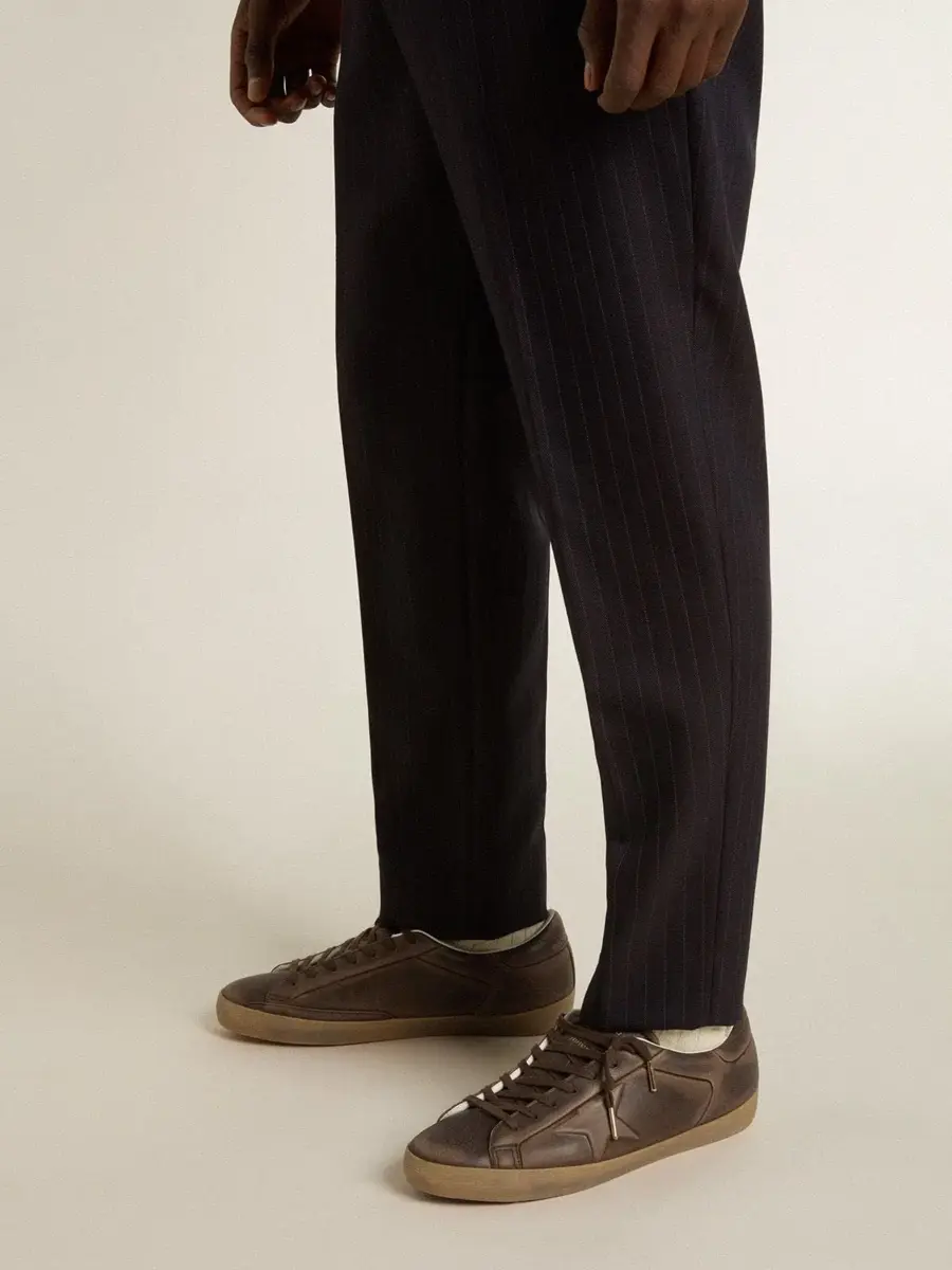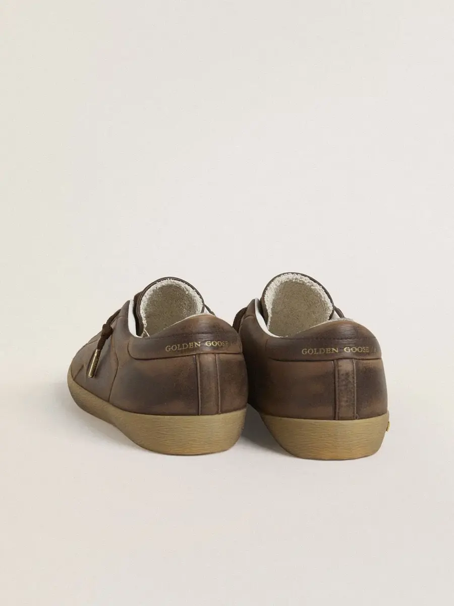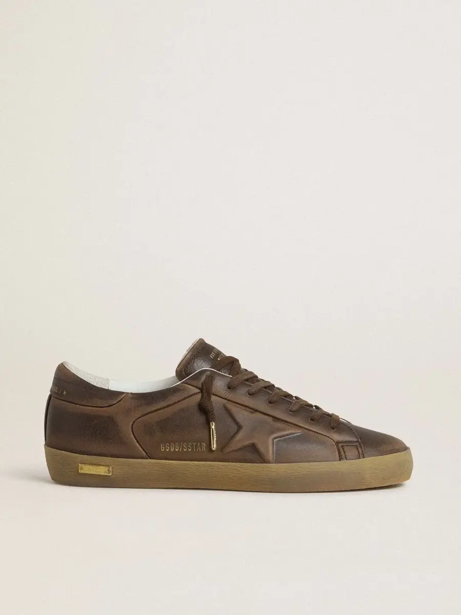 Un icono atemporal, pero en constante evolución. En Golden nos encanta retocar nuestros clásicos y renovarlos constantemente, siempre desde un nuevo punto de vista. Estas Super-Star con parte superior de piel marrón cuentan con una estrella y una lengüeta en el talón también de piel marrón. El efecto desgastado de la parte superior marrón y los cordones marrones añaden el toque final.